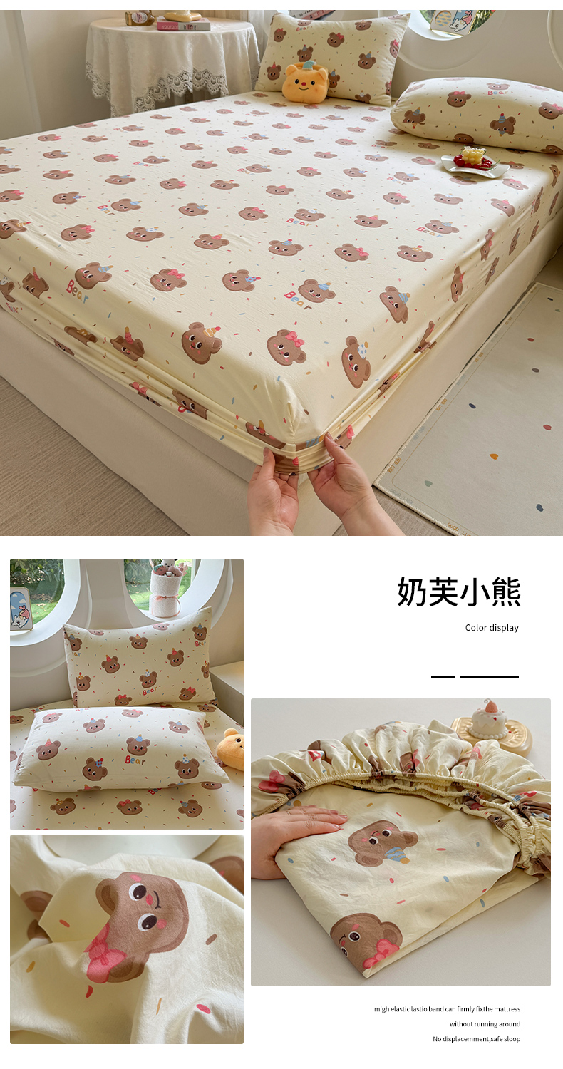 十一家居 2025新款ins韩系卡通印花亲肤水洗棉床笠 奶芙小熊