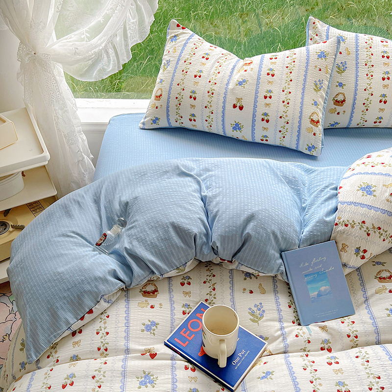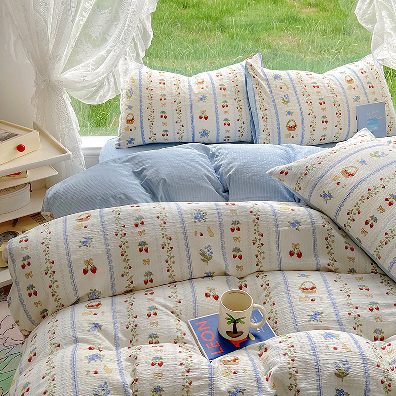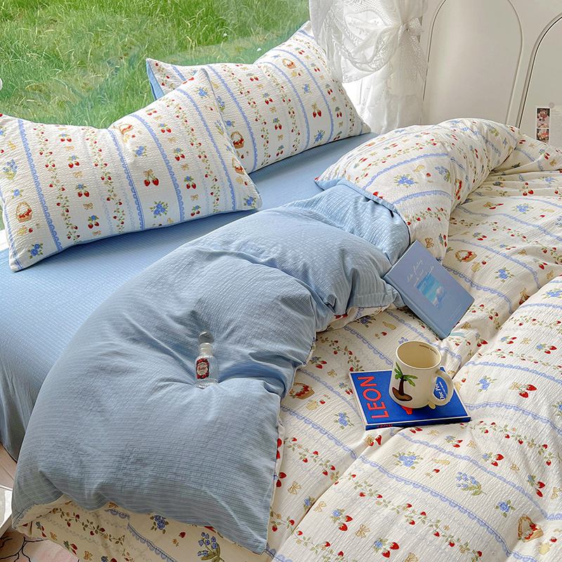 (总)王朝国际 2025新款皱皱棉印花四件套,豆蔻,蝴蝶熊,花舞,蓝条,蓝汐,露丝,绿樱桃,曼陀罗,蜜糖橘,塞纳河,星空蓝,芝士奶盖,紫豹,紫蔷薇