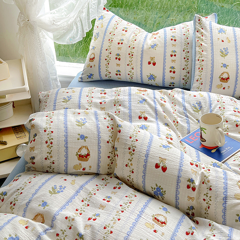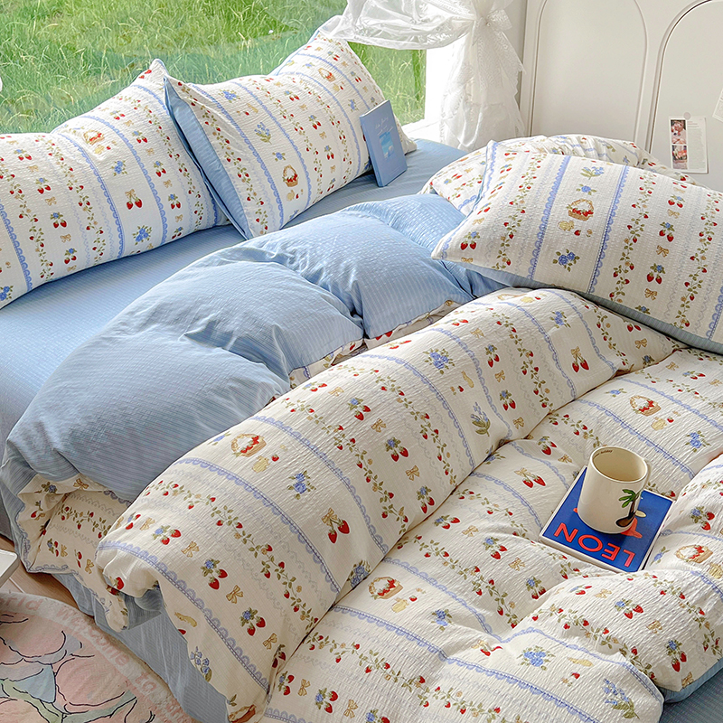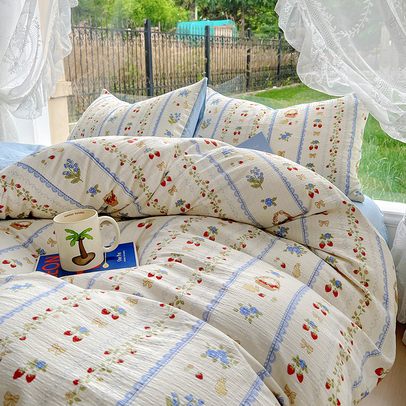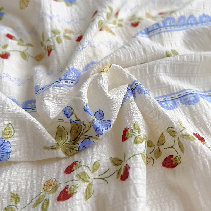商品名称:王朝国际 2025新款直播热款有氧提花有氧双层纱碎花单被套 蕾丝草莓