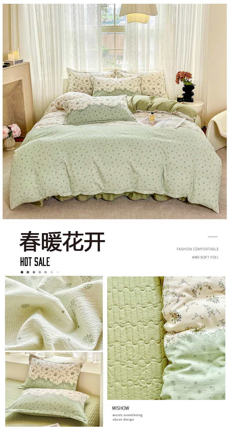 商品名称:2026春夏新款拼色提花双层纱古法水洗床盖四件套提花云感棉 春暖花开