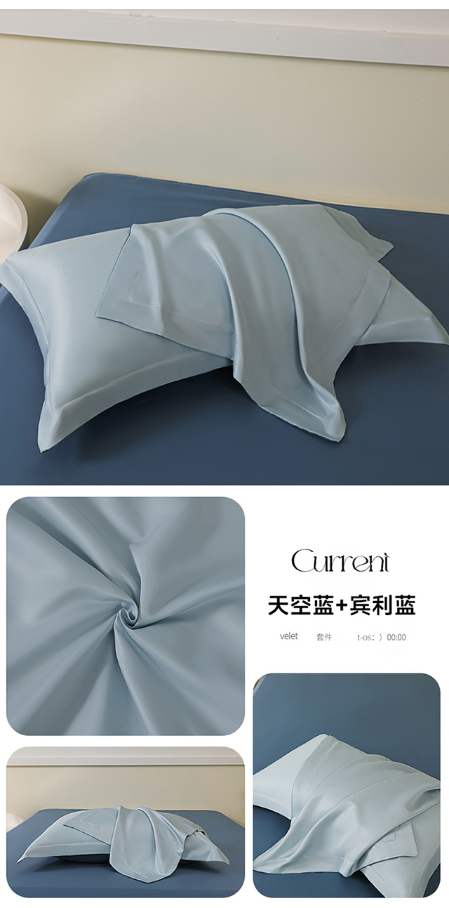 商品名称:多乐家纺 2025新款水洗冰丝真丝纯色双拼枕套 天空蓝+宾利蓝