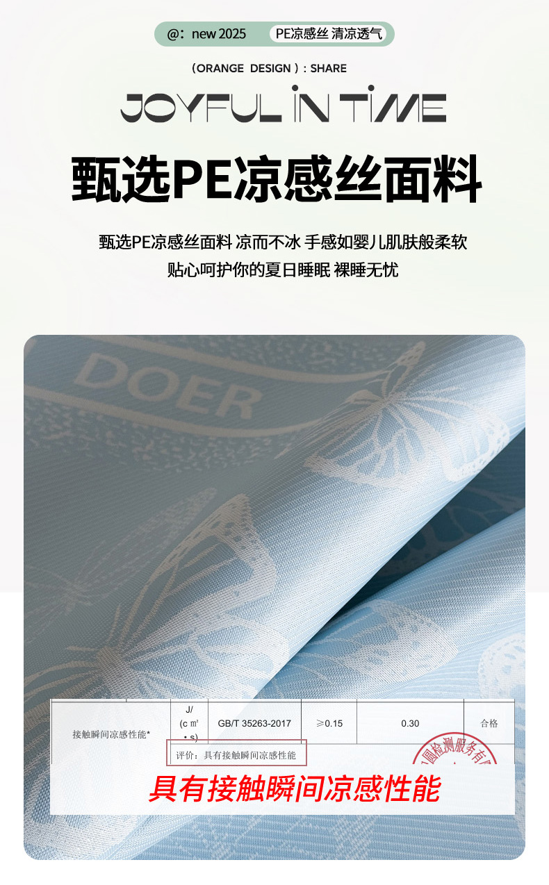 商品名称:九花鹿 2025新款A类PE凉感提花床笠款冰丝凉席软凉席可机洗可水洗 蝶舞(天空蓝)