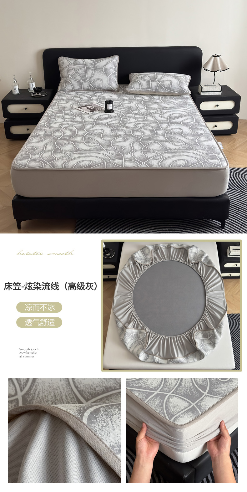 九花鹿2024新款A类大版碳光冰丝凉席床笠款三件套四件套,大版床笠款-熊宝贝