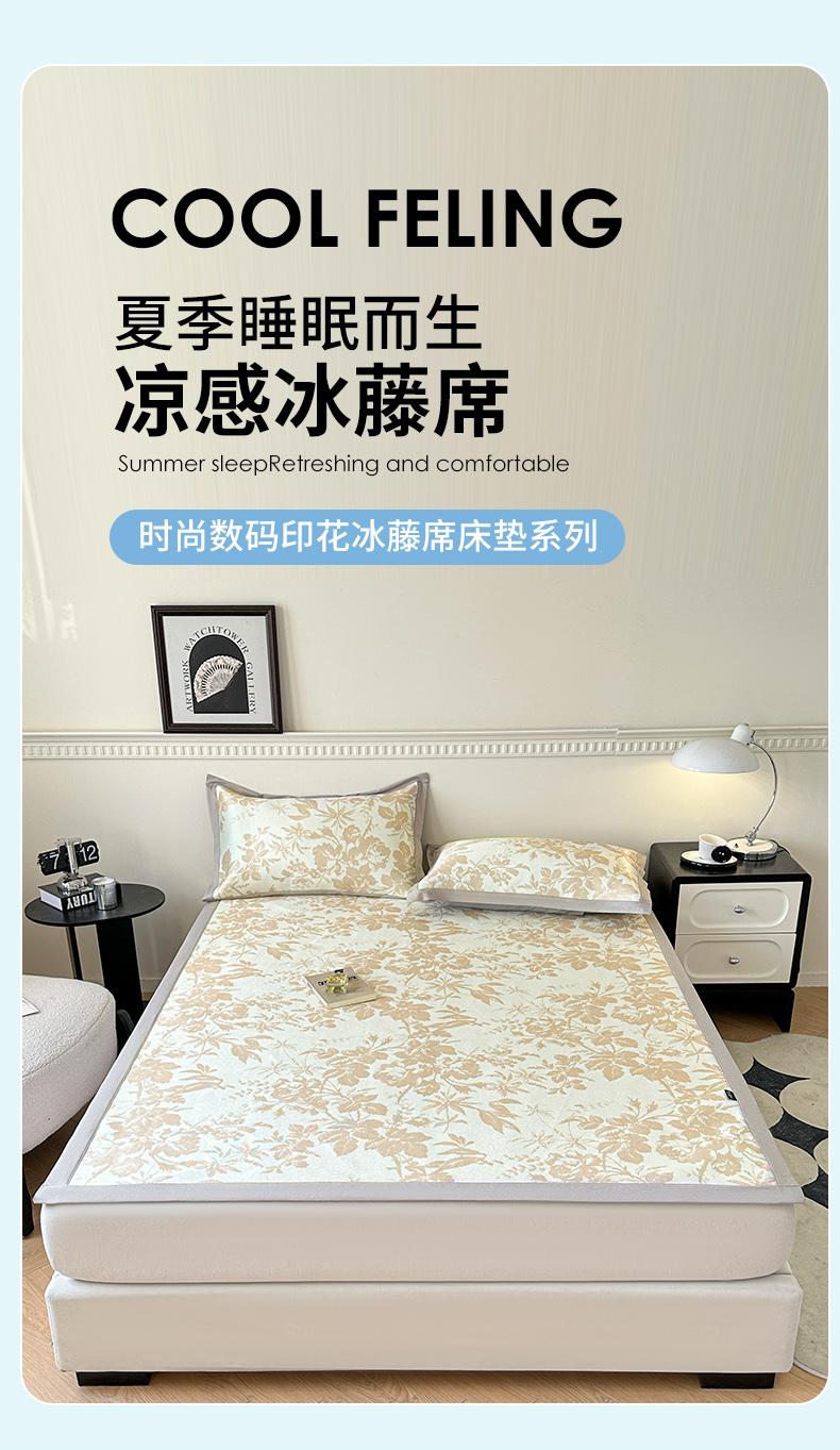 宜代光年 2025新款数码印花冰藤席-床席款 冰藤繁花 咖