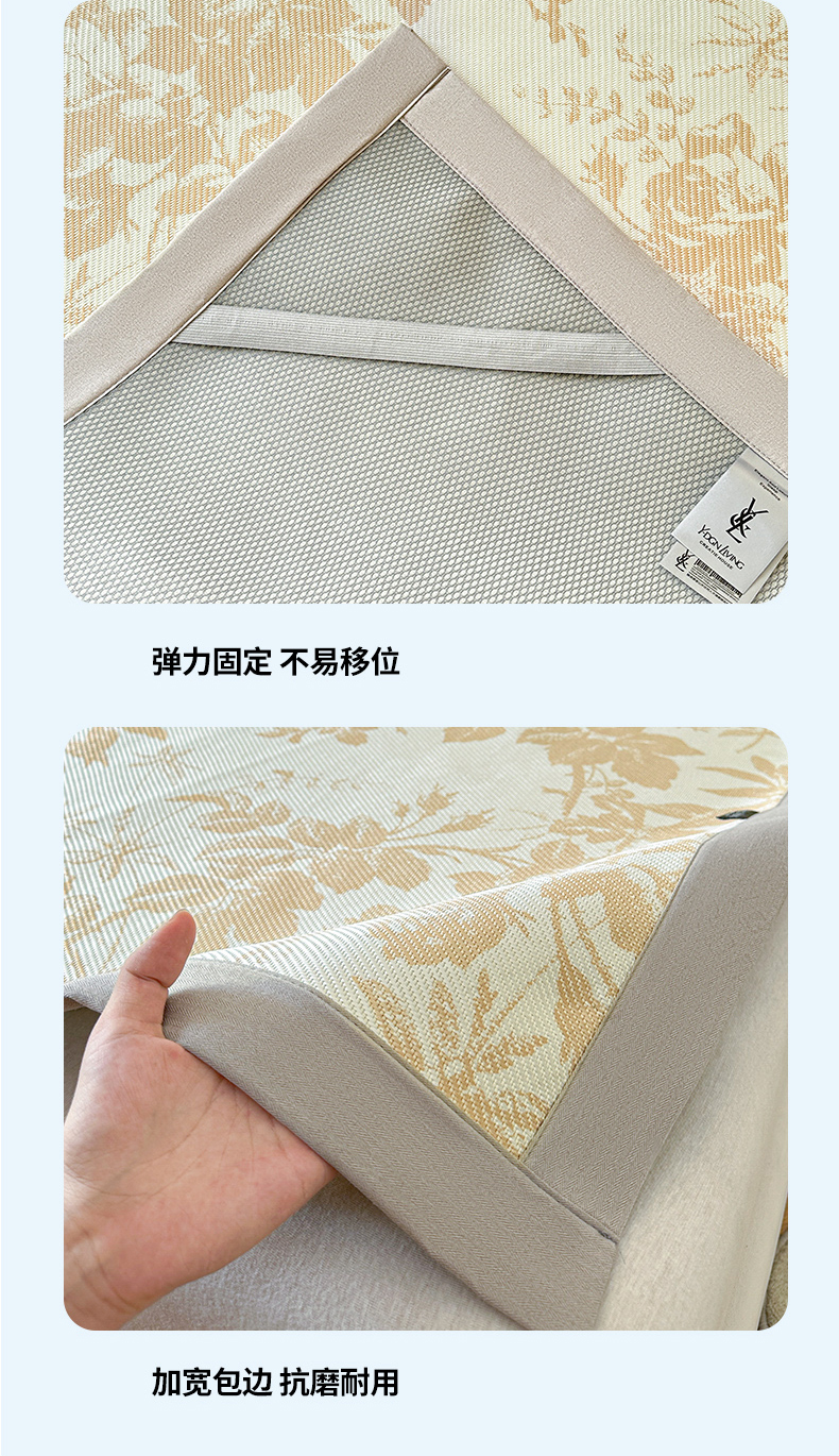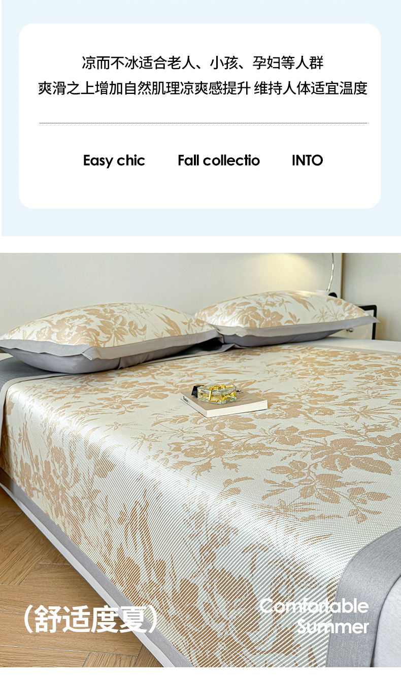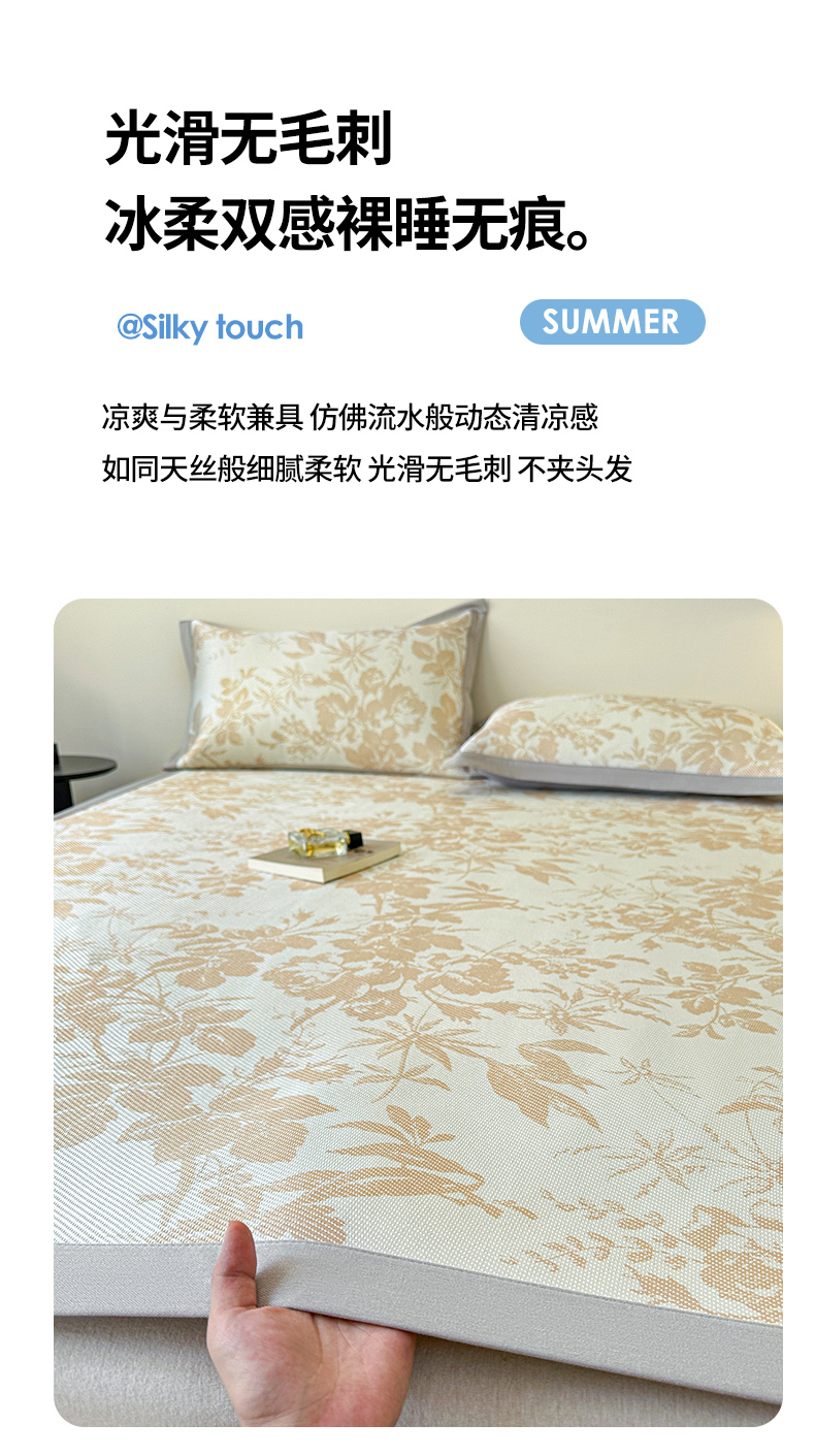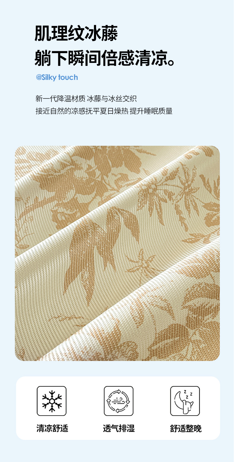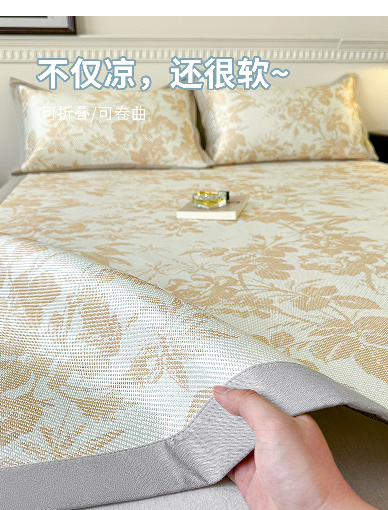 商品名称:宜代光年 2025新款数码印花冰藤席-床席款 冰藤繁花 咖