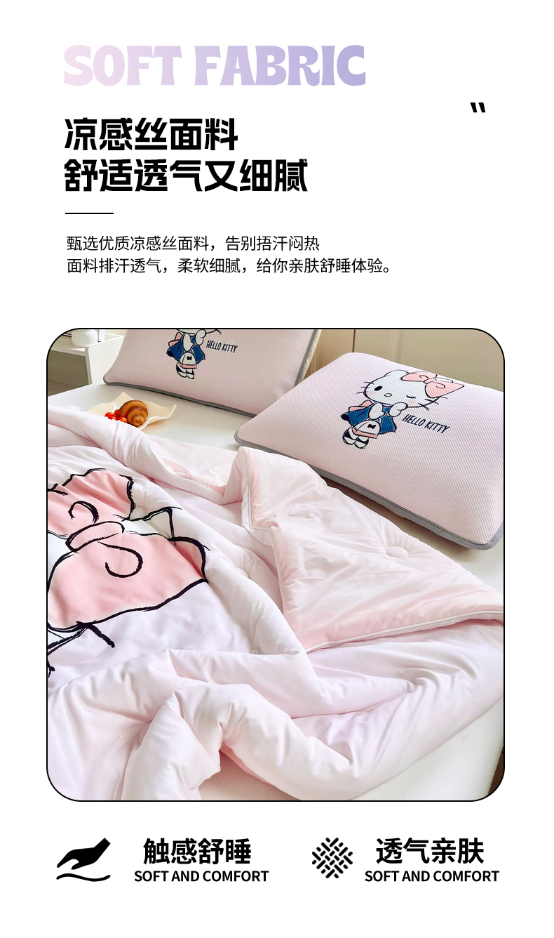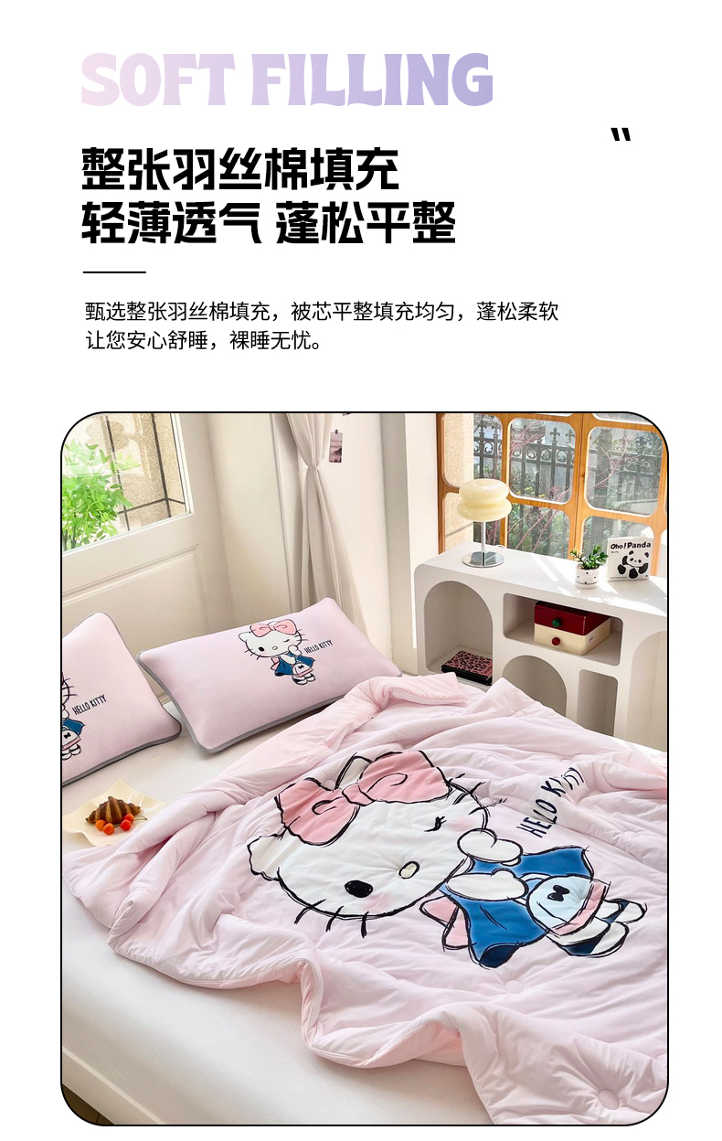 • 91家纺网 家纺一手货源 找家纺 蘭菲家纺 2025新款三丽鸥卡通印花夏被 摩卡
