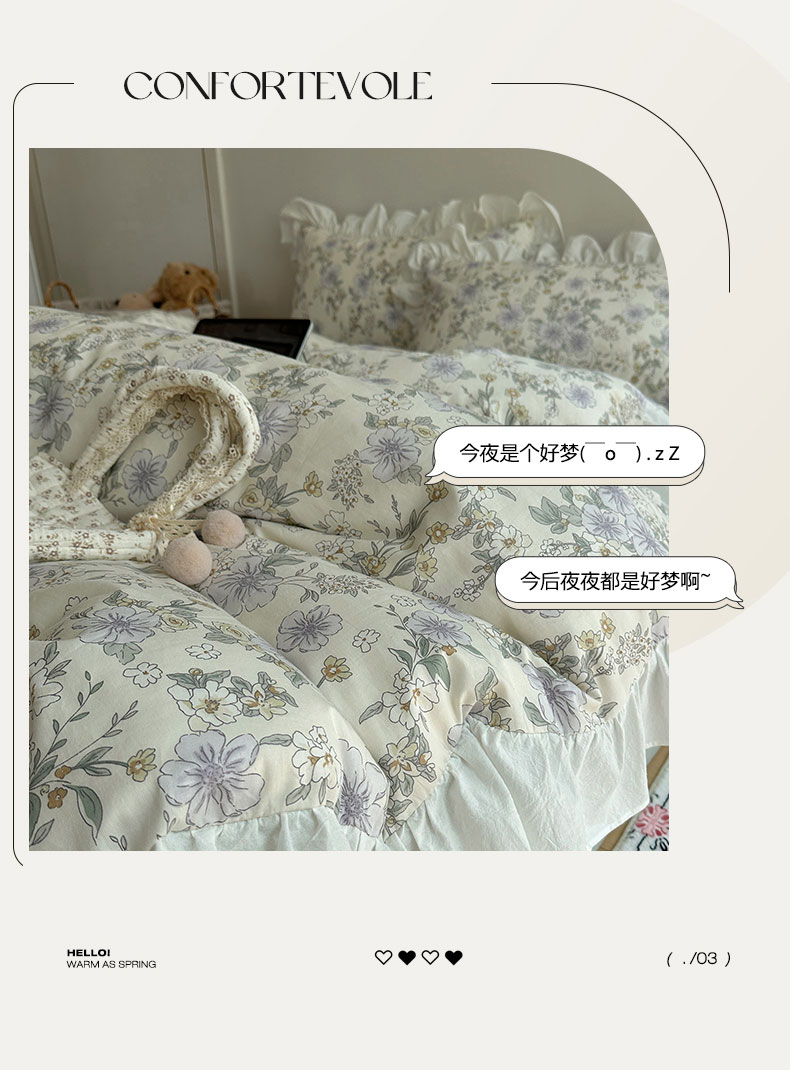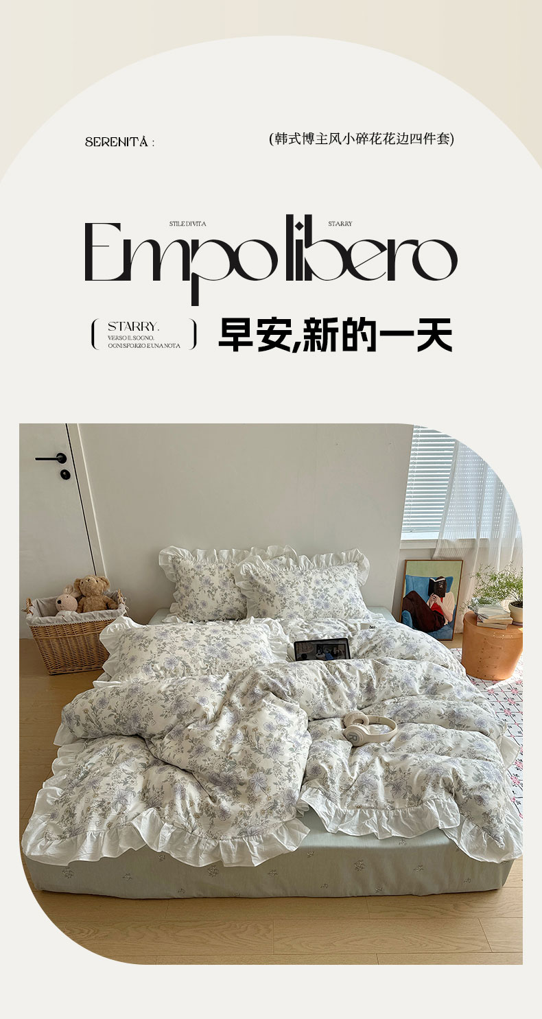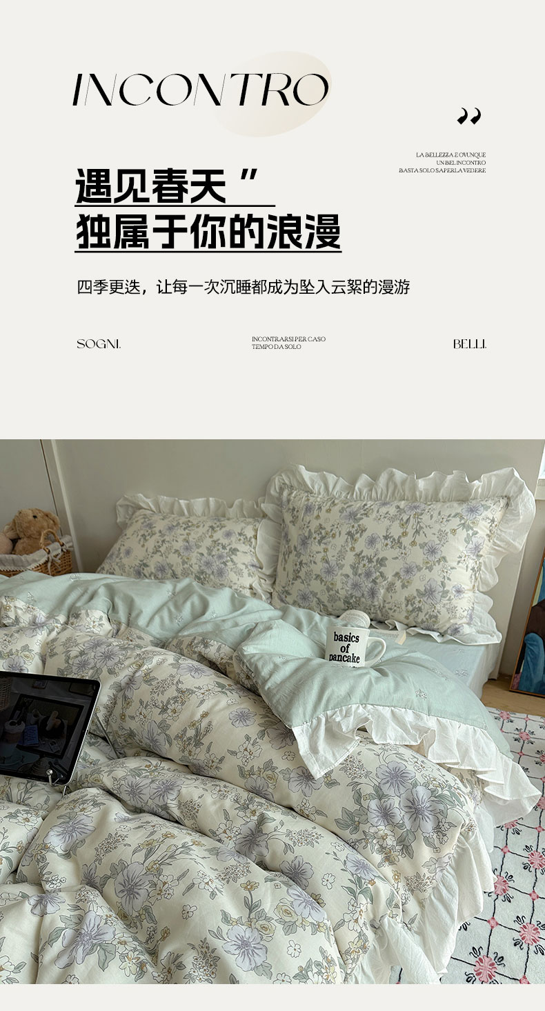 商品名称:六巷胡同 2025新款40支全棉韩式INS博主风小碎花花边四件套-风格二 知春
