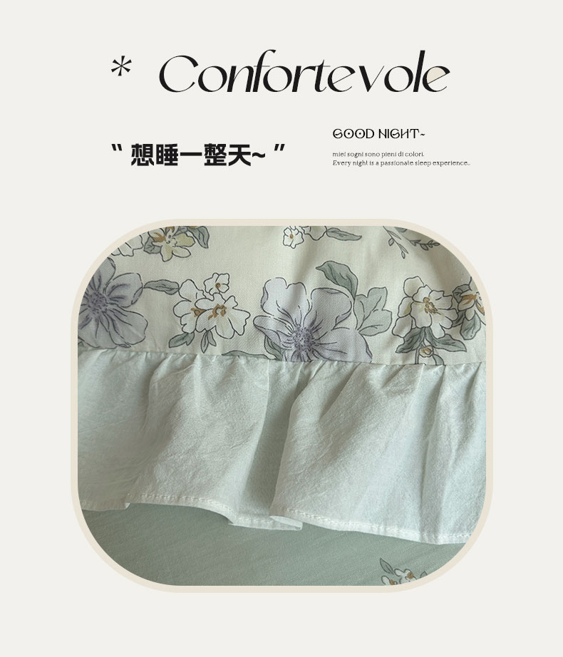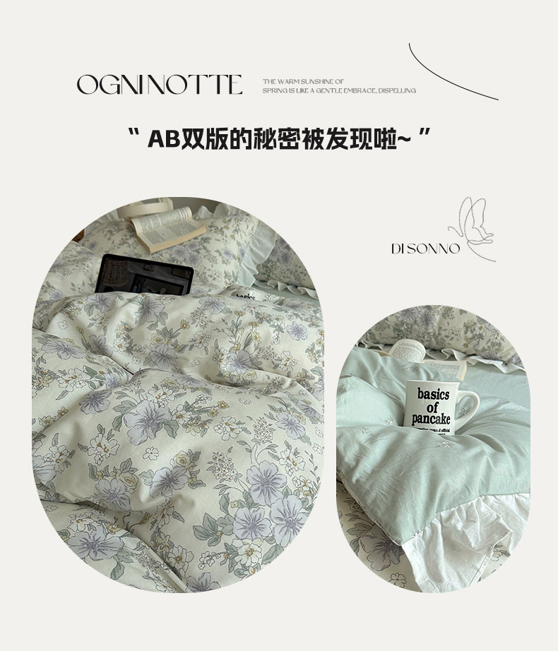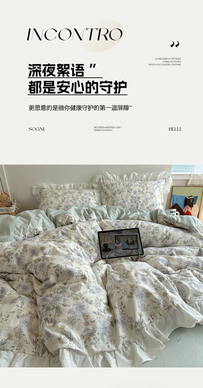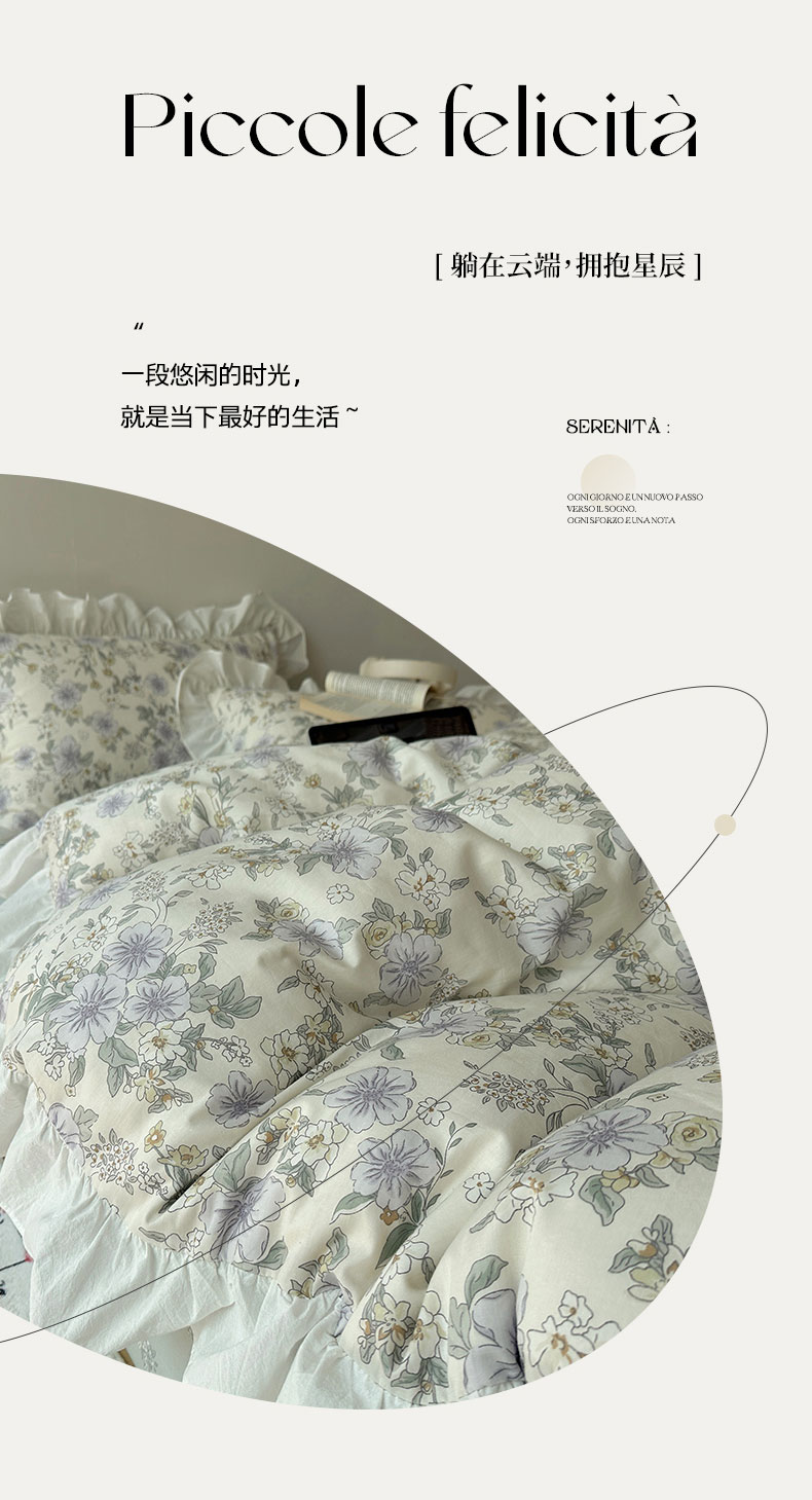 商品名称:六巷胡同 2025新款40支全棉韩式INS博主风小碎花花边四件套-风格二 知春