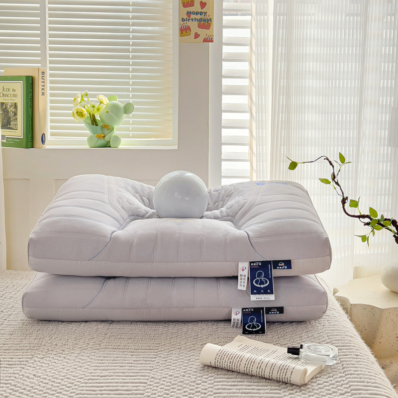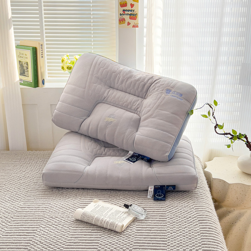(总)幸运草 2025新款仙丝本草绗绣枕头 单人成人家用护颈枕枕芯,粉色一只,灰色一只,蓝色一只