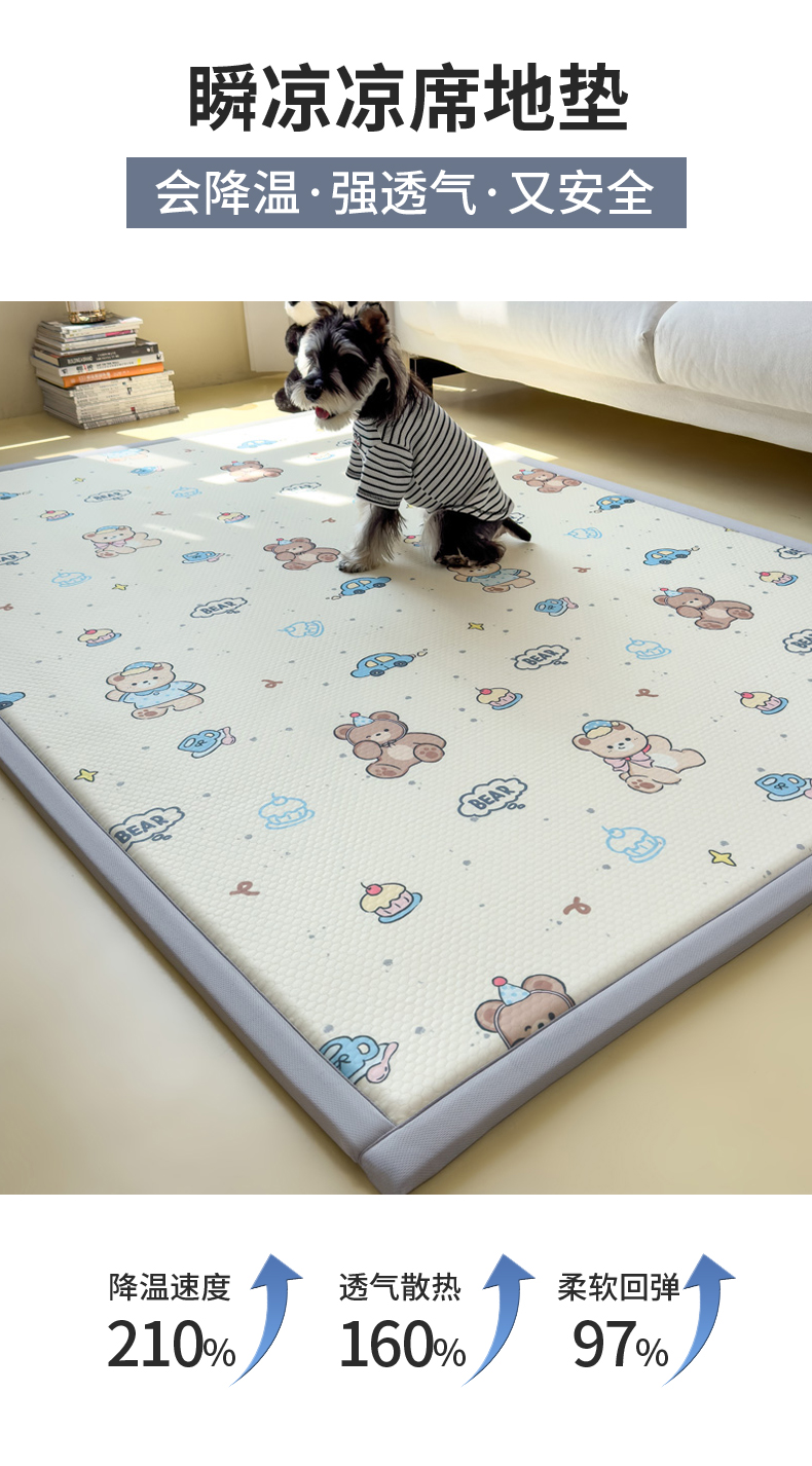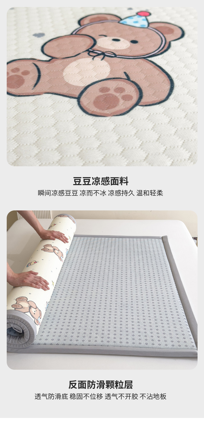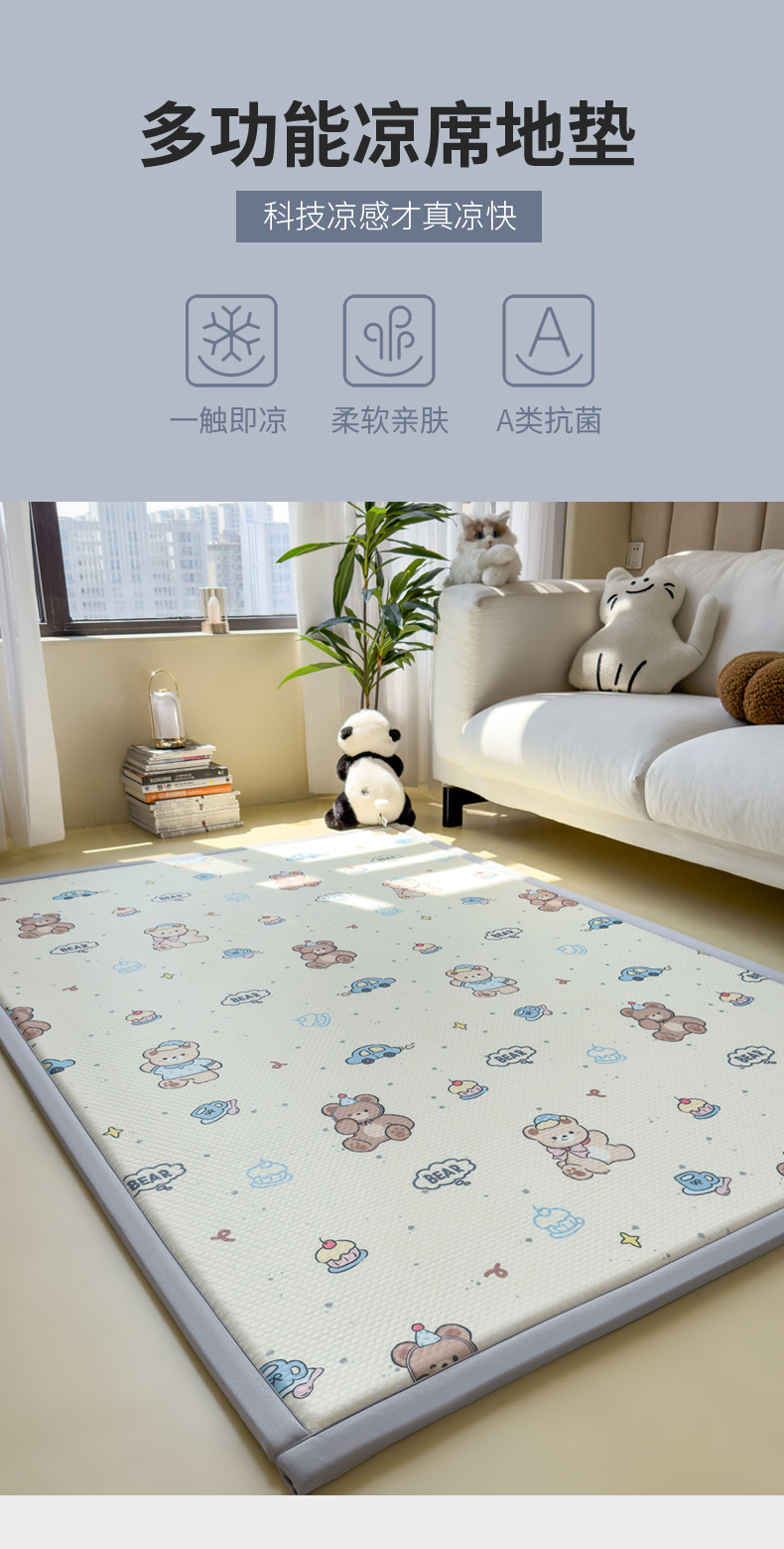 (总)席世家 2025新款凉感豆豆多功能地垫凉席垫,波洛格-粉,波洛格-灰,波洛格-蓝,波洛格-米,小熊-粉,小熊-蓝