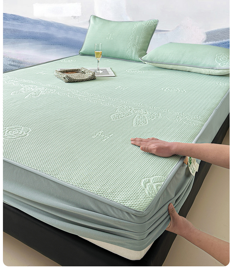 当前位置: 91家纺网 > 商品网购 > 床上用品 > 凉席 > 冰丝席 > 鑫钰 2025新款A类进口PE高冷感凉席高端聚乙烯凉豆豆高克重480克冰丝凉席床笠三件套 山茶物语-绿