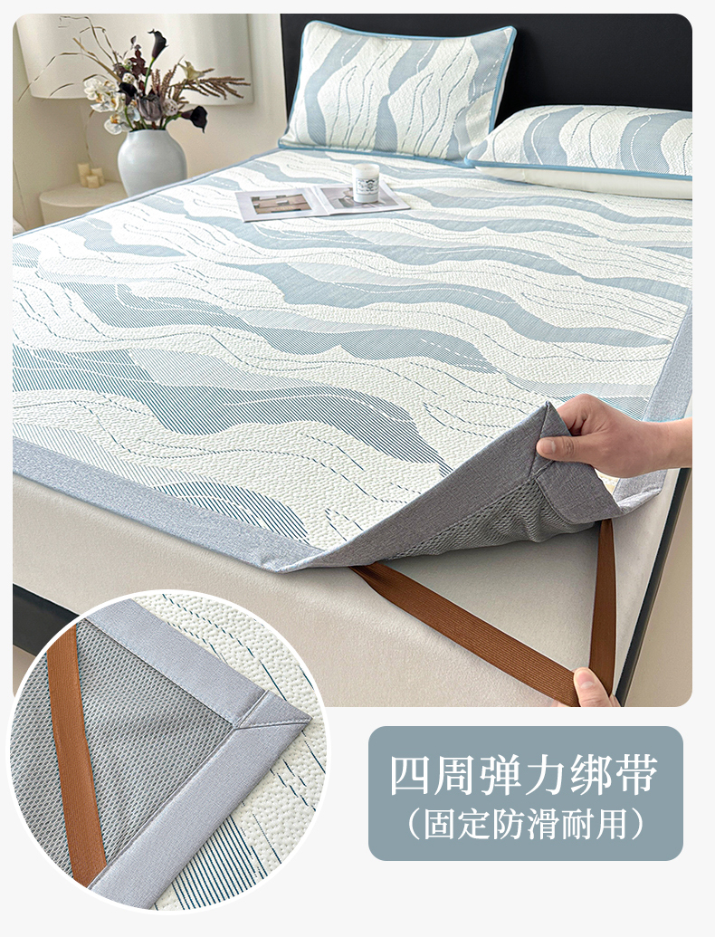 当前位置: 91家纺网 > 商品网购 > 床上用品 > 凉席 > 冰丝席 > 鑫钰 2025新款A类进口PE高冷感凉席高端聚乙烯凉豆豆高克重480克冰丝凉席床席三件套 沁夏-冰川蓝