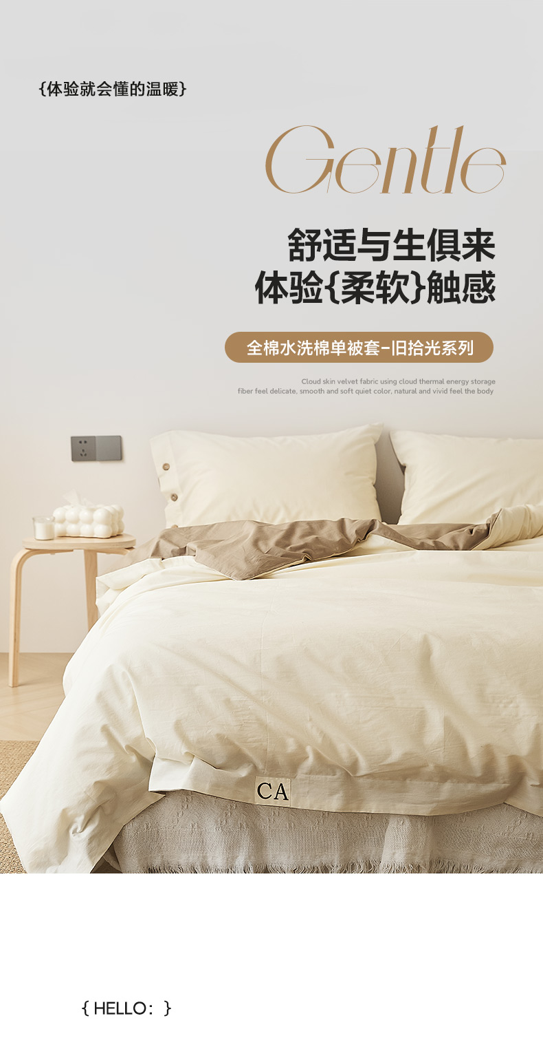 EH家居 2025新款旧拾光系列全棉水洗棉单品被套 旧拾光-米咖