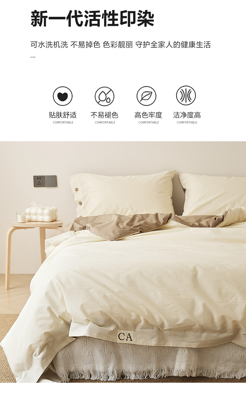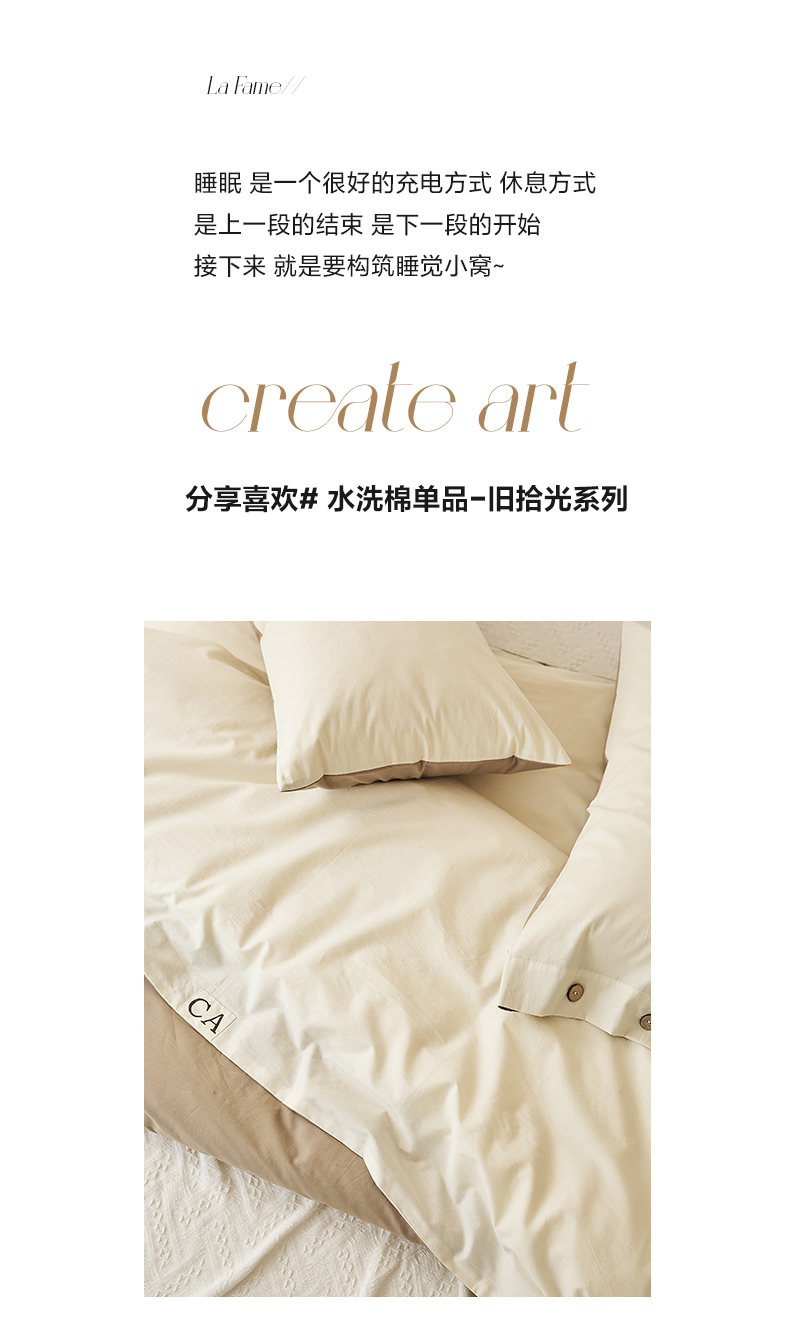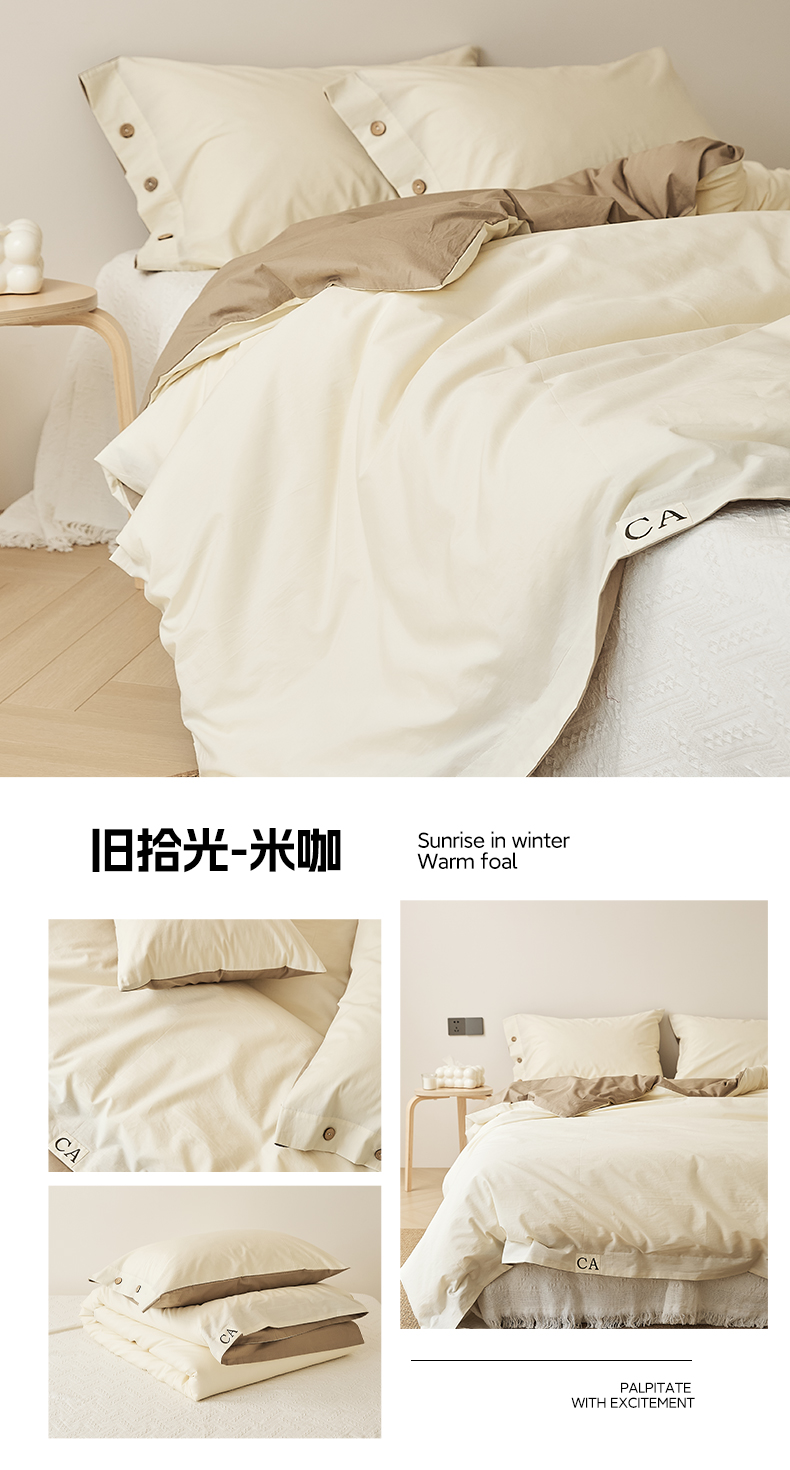 • 91家纺网 家纺一手货源 找家纺 EH家居 2025新款旧拾光系列全棉水洗棉单品被套 旧拾光-米咖