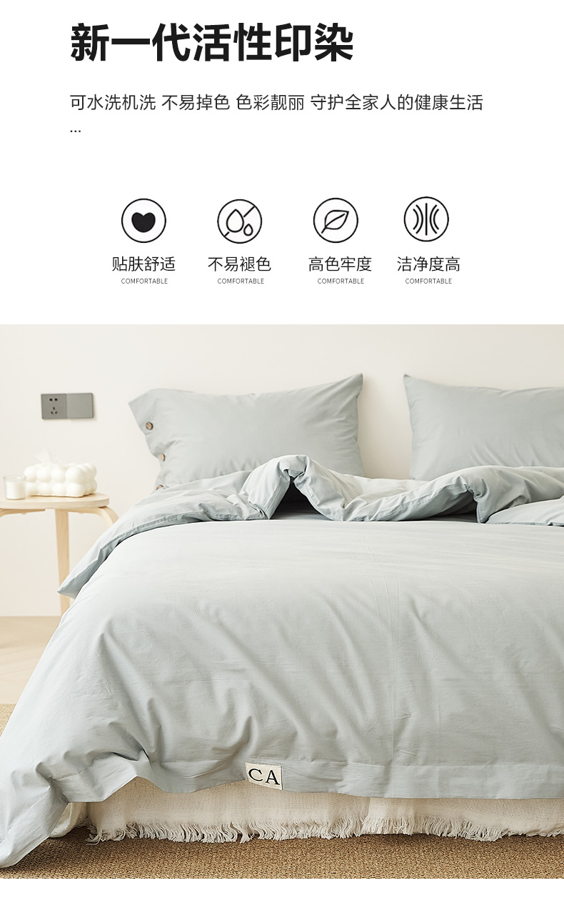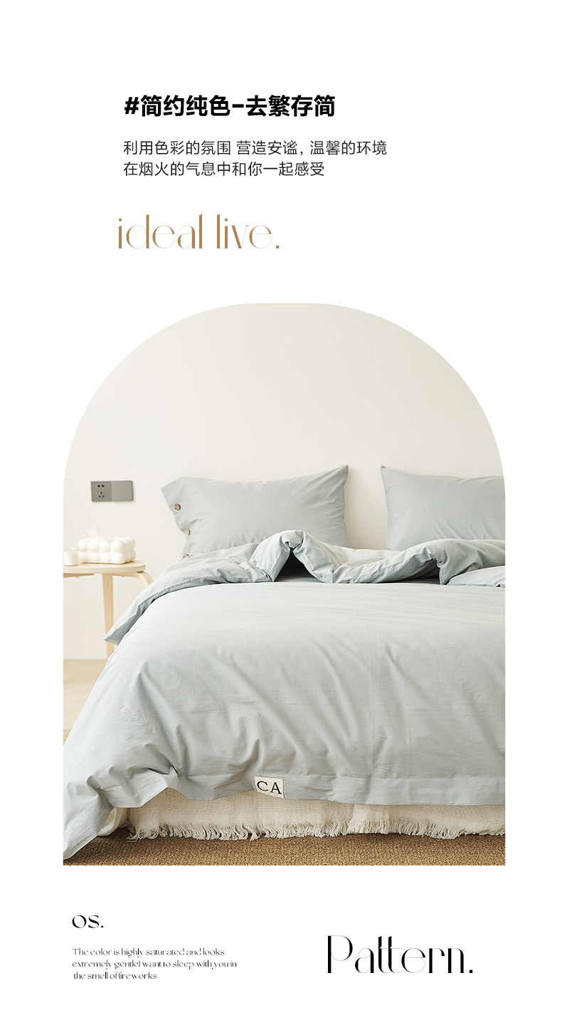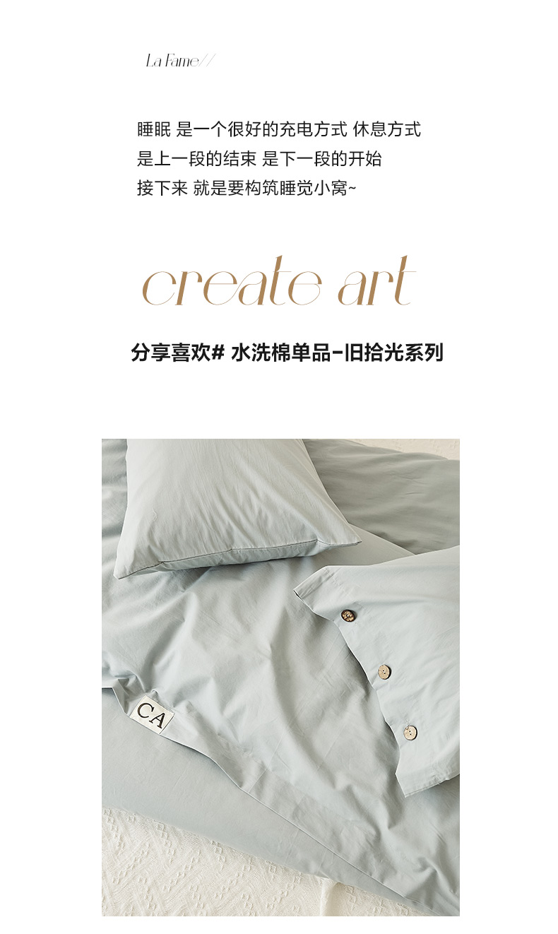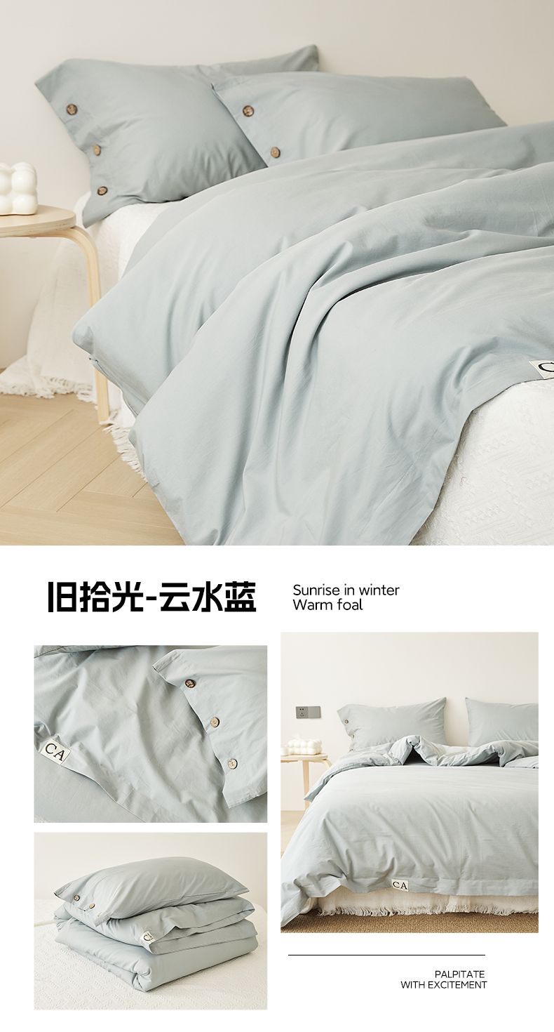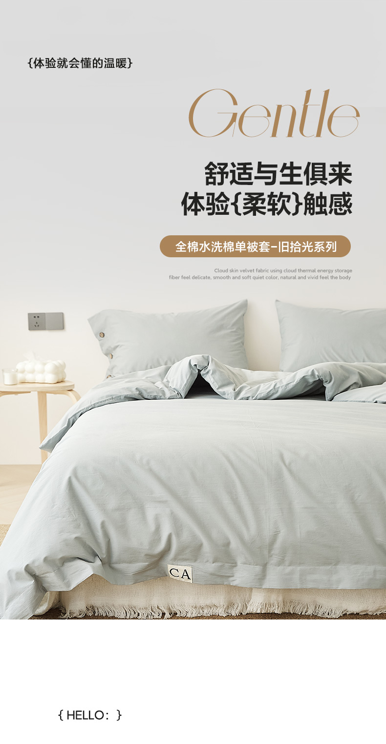 • 91家纺网 家纺一手货源 找家纺 EH家居 2025新款旧拾光系列全棉水洗棉单品被套 旧拾光-云水蓝