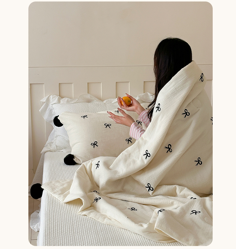 商品名称:圆岛家纺 2025新款全棉皱皱纱蝴蝶结刺绣夏被被子被芯 芋泥紫