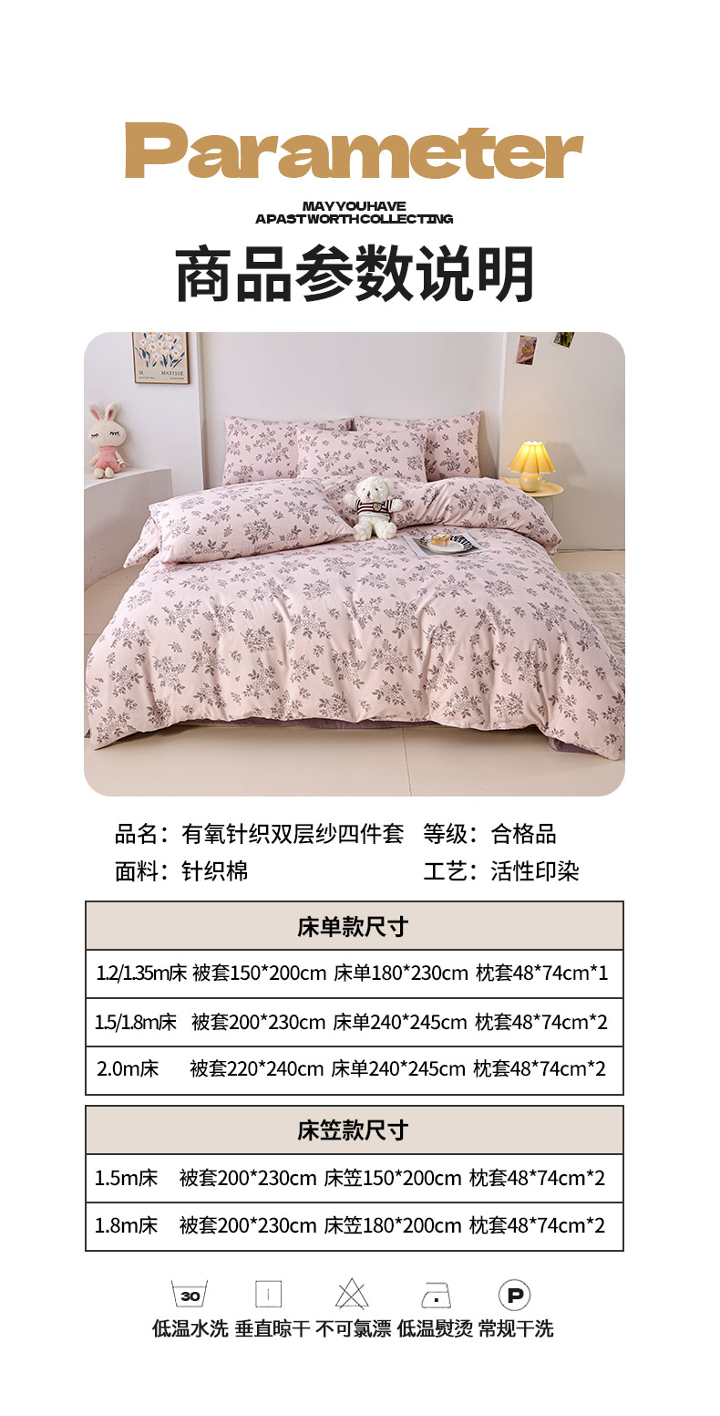 商品名称:爱诗诺家纺 2025新款有氧高克重针织棉双层纱四件套 悠然