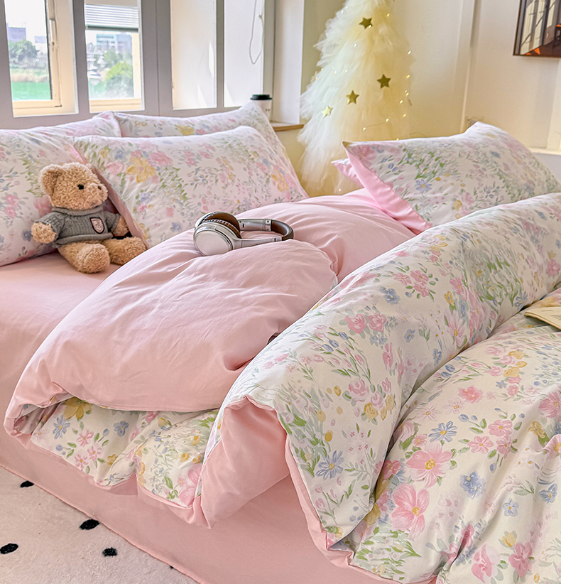 芊寻家居 2025新款13372全棉印花系列单被套 花丛 粉