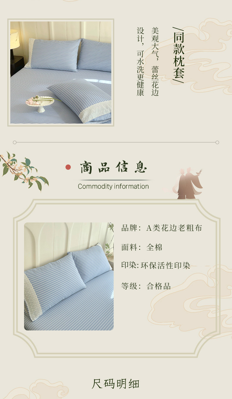 商品名称:春皖家纺 2025春夏新款老粗布花边款单枕套 枕套单件 花边-细川聚