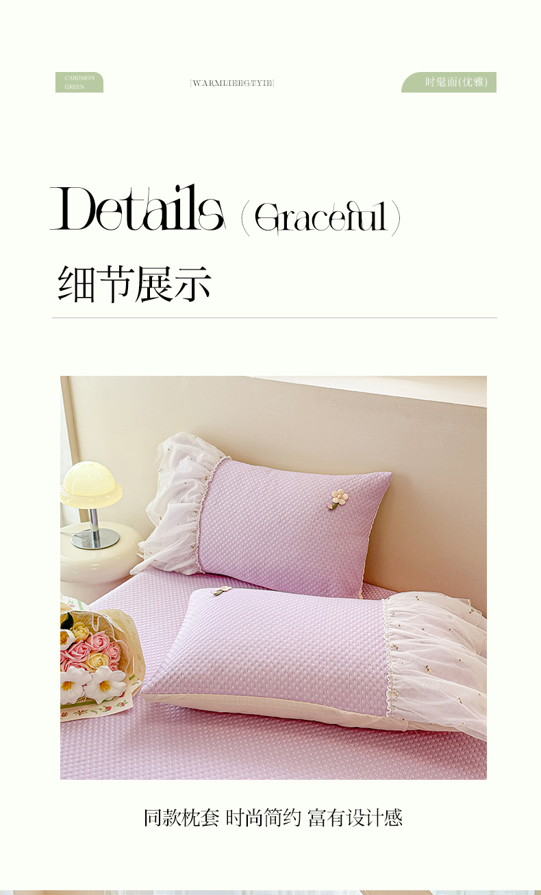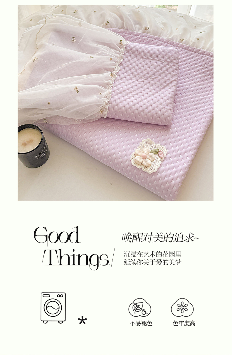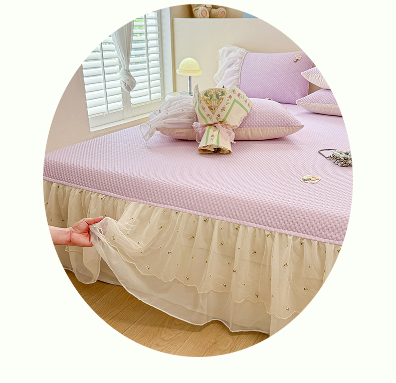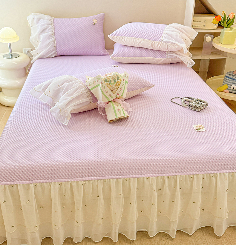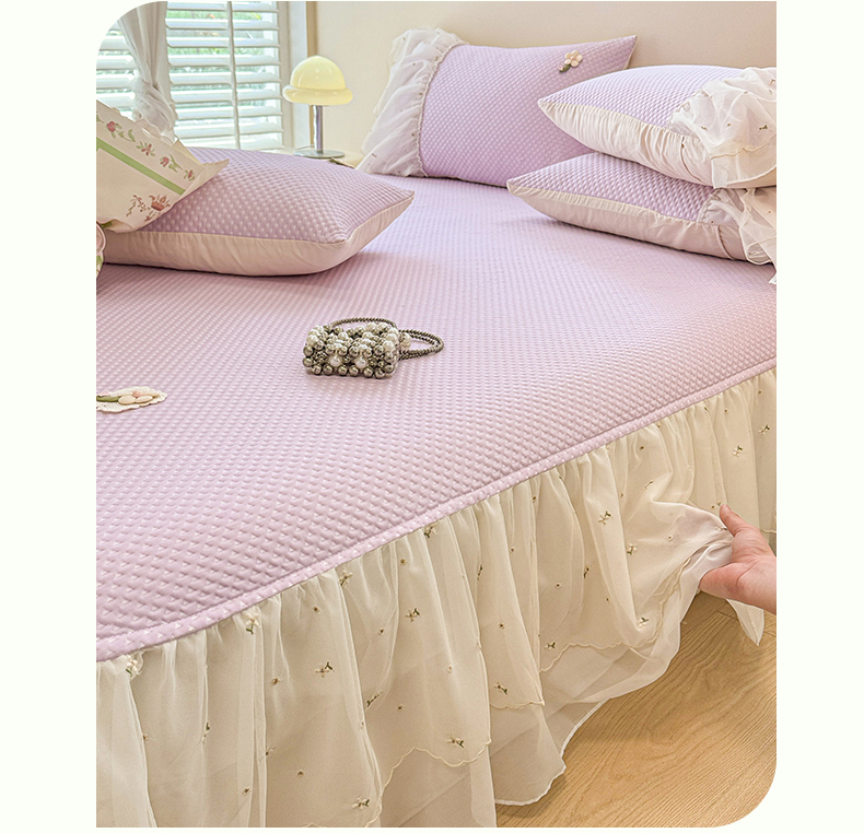 商品名称:蓝邻家纺 2025春夏新款PE提花雪纺+绣花花边凉席席子 夏花-紫