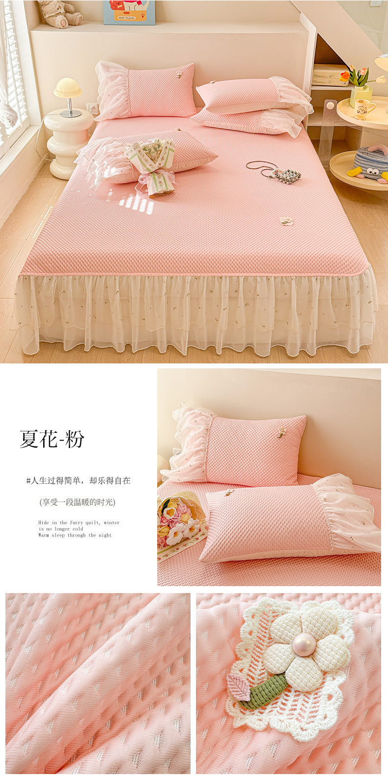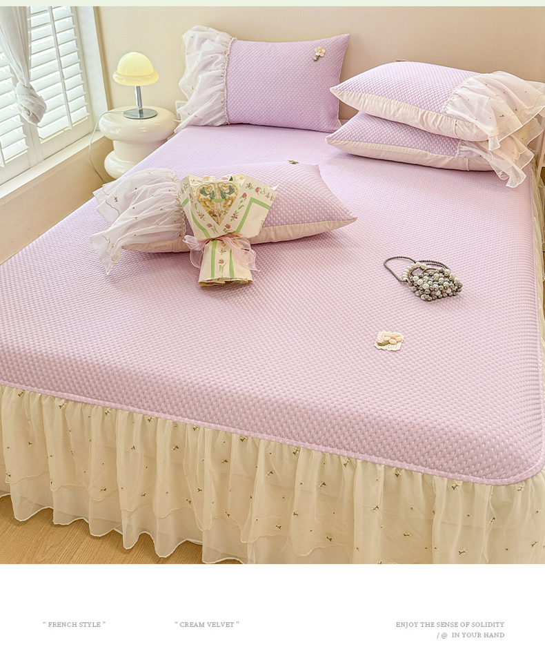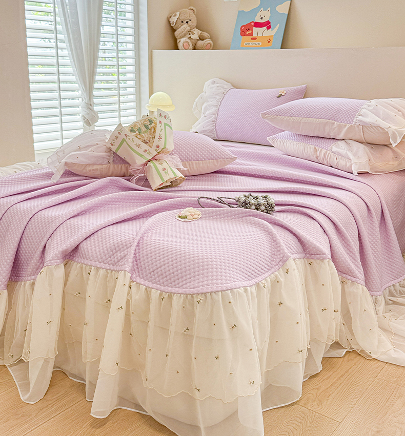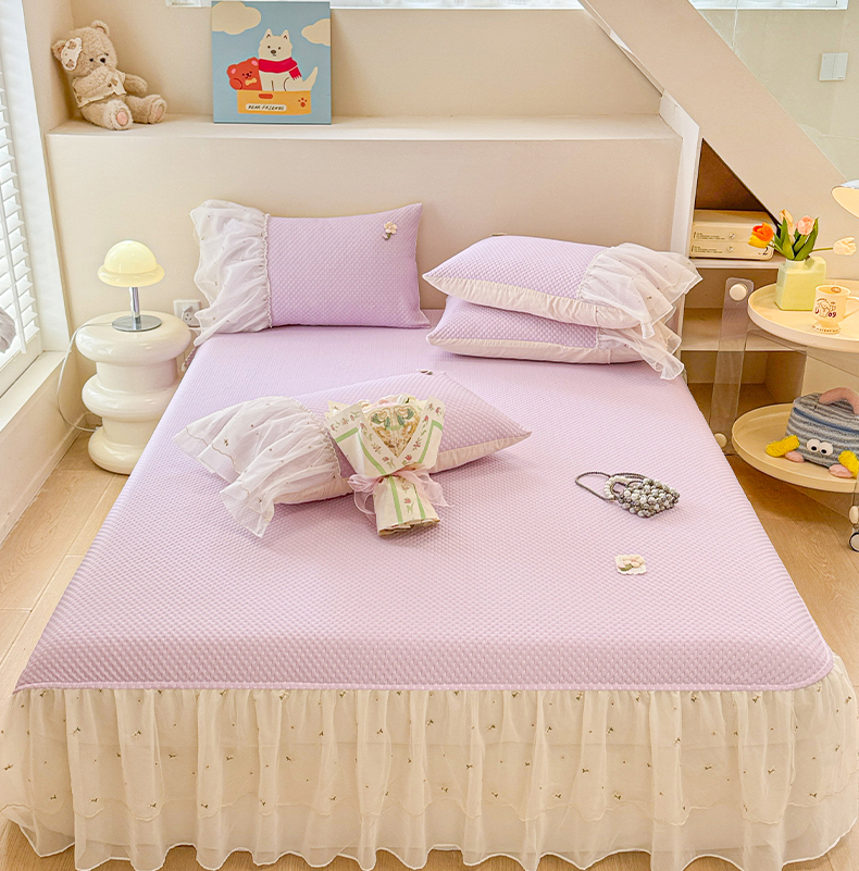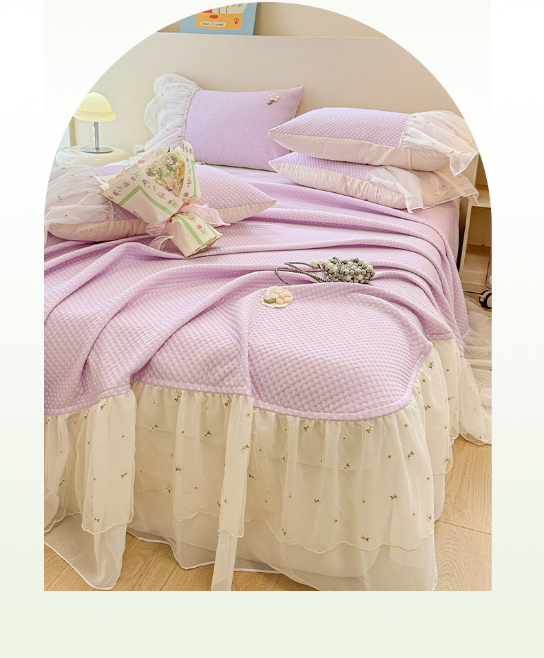 蓝邻家纺 2025春夏新款PE提花雪纺+绣花花边凉席席子 夏花-紫