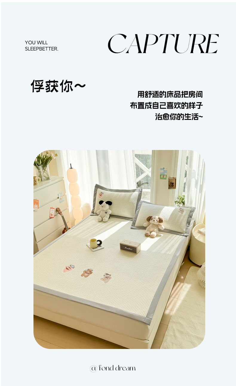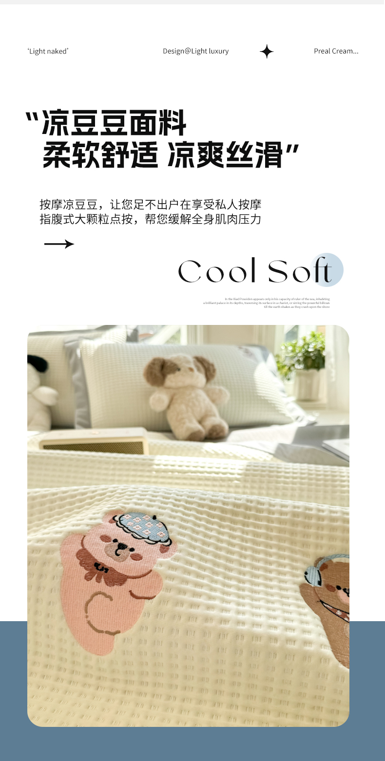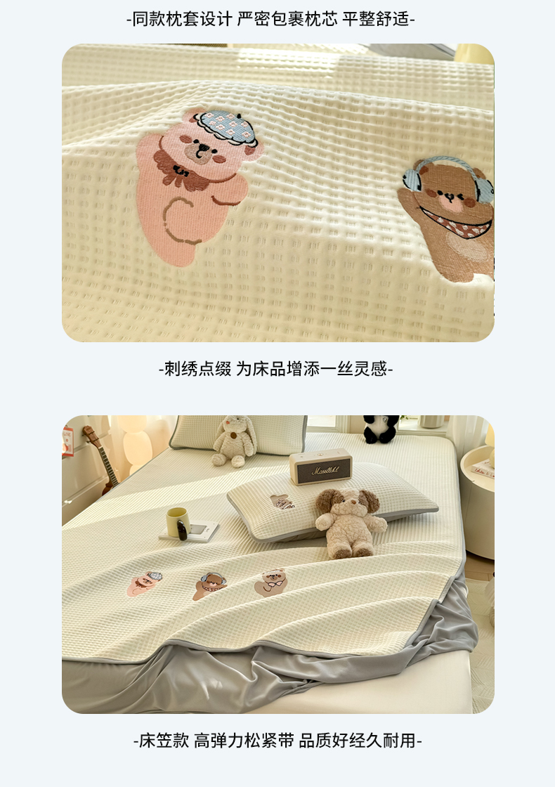 当前位置: 91家纺网 > 商品网购 > 床上用品 > 凉席 > 其他凉席 > 萌飞 2025新款乙纶PE中分子华夫格凉豆豆凉席 中分子PE凉豆豆凉席-欢乐熊-米白【床笠款】