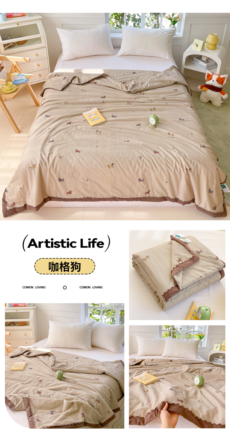 商品名称:2025新款全棉60支单层纱花边夏被 咖格狗