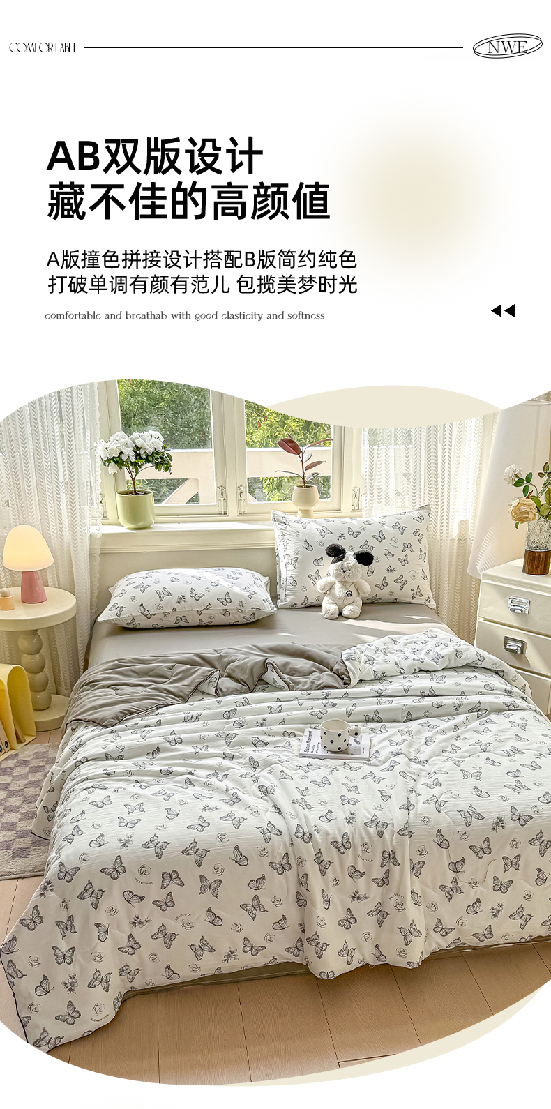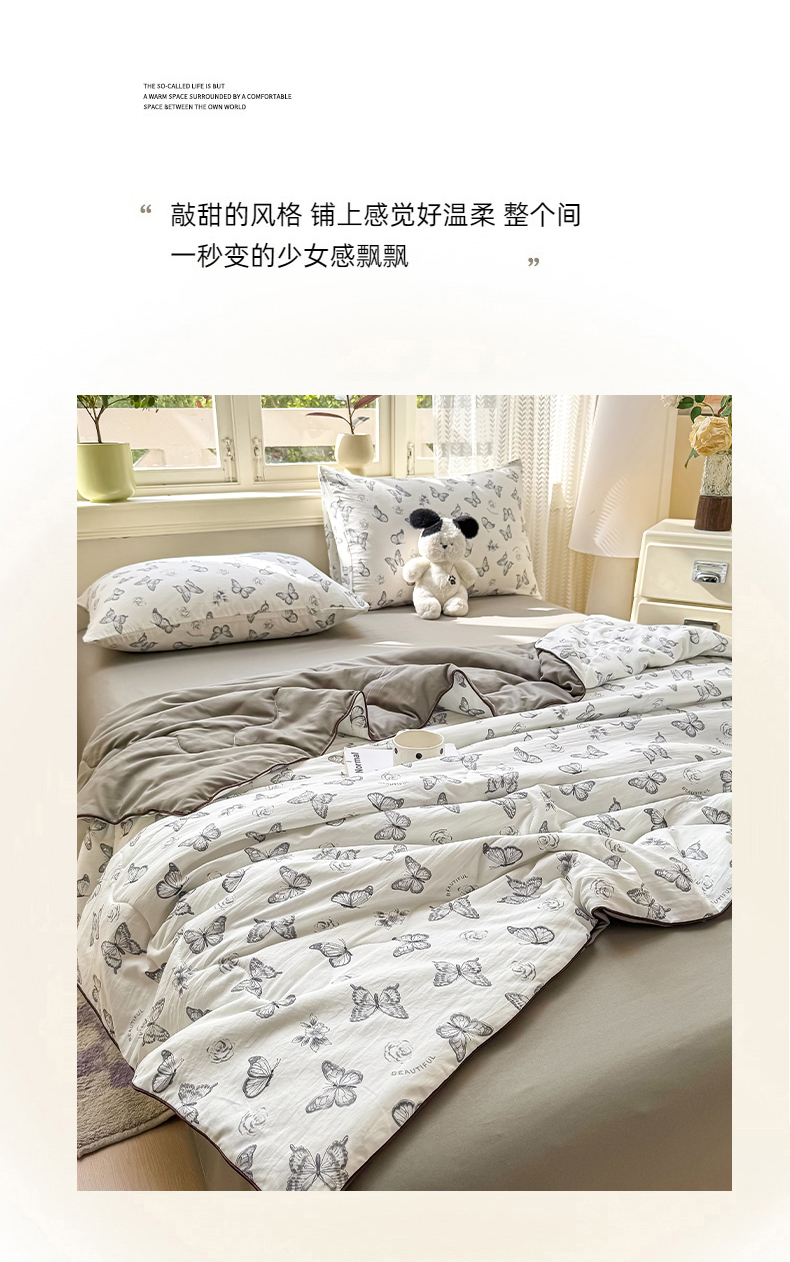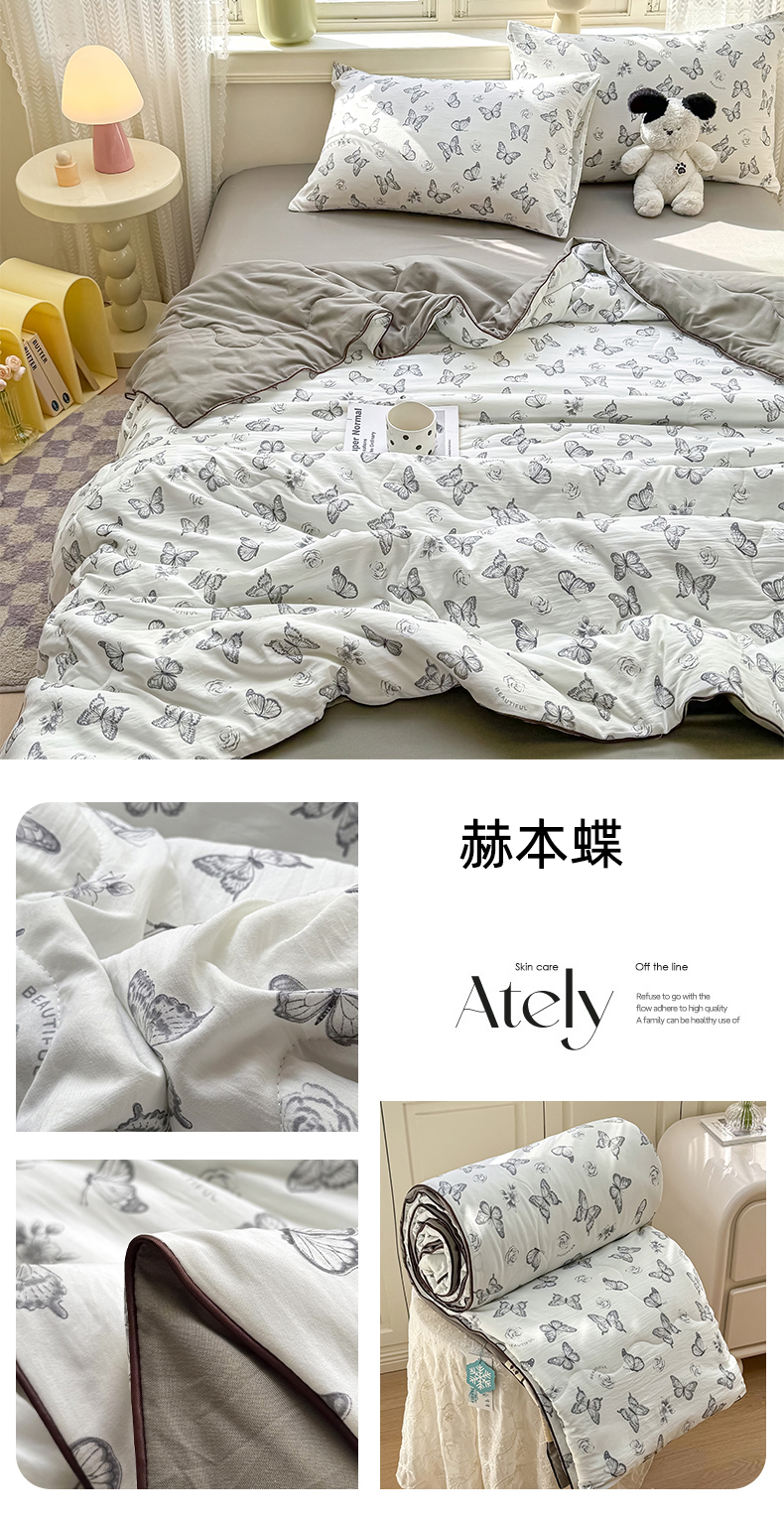 丝芙妮家居(原乐视家纺) 2025春夏新款针织棉卡通印花夏被夏凉被空调被 赫本蝶