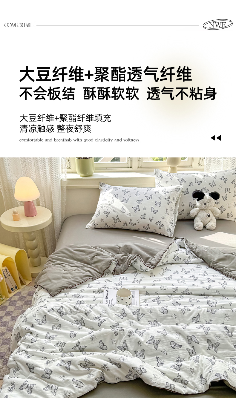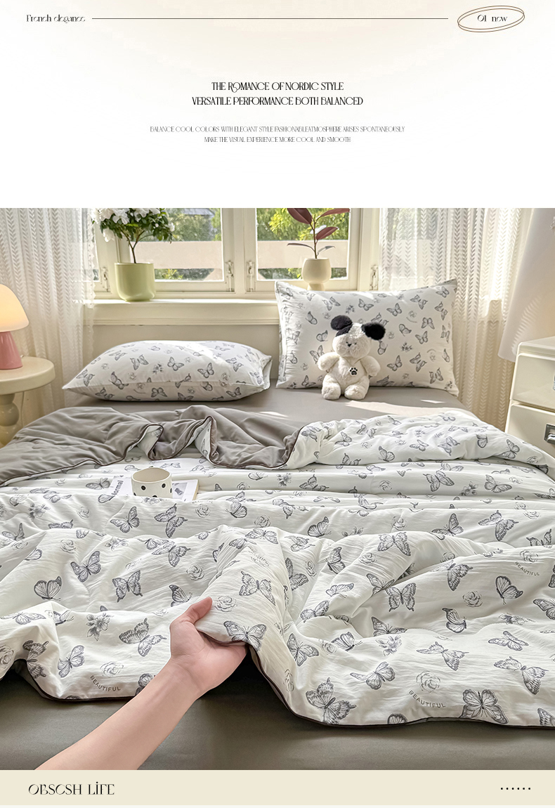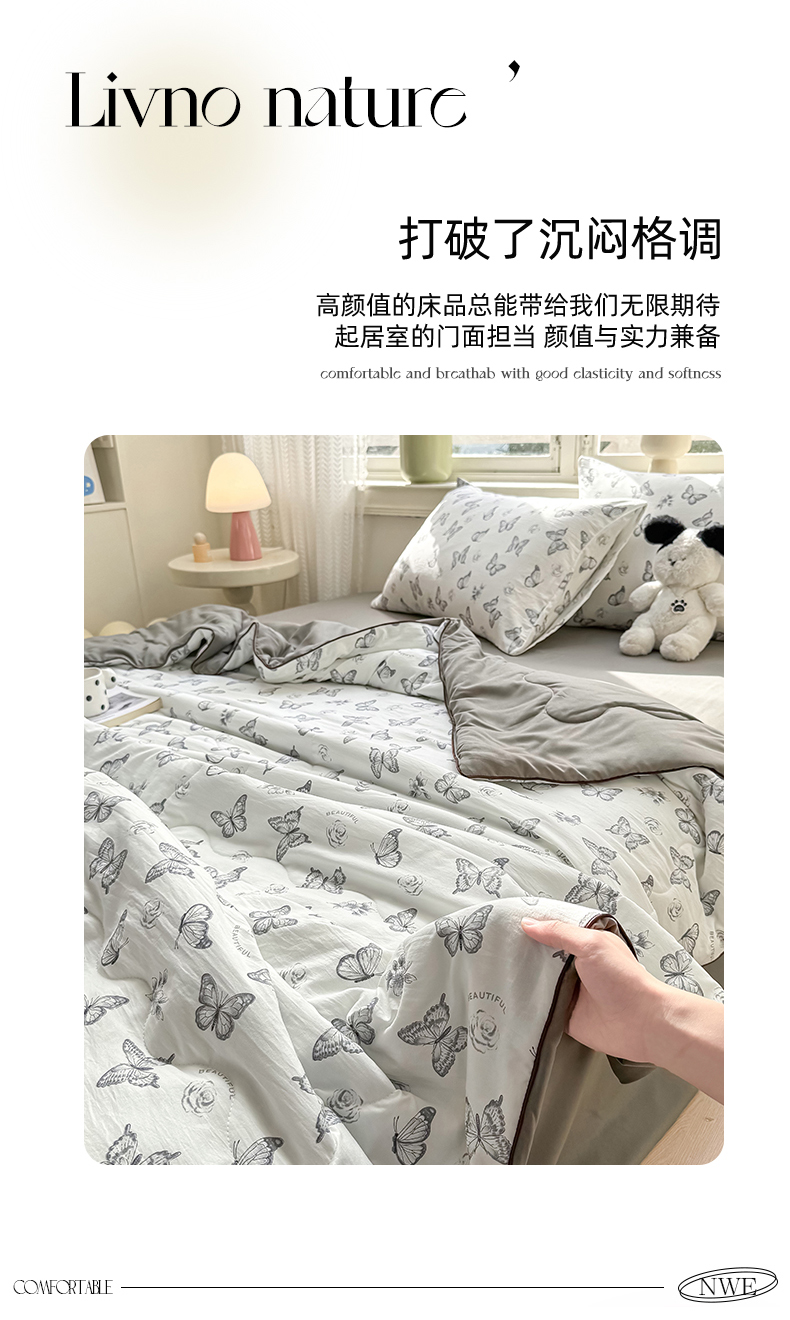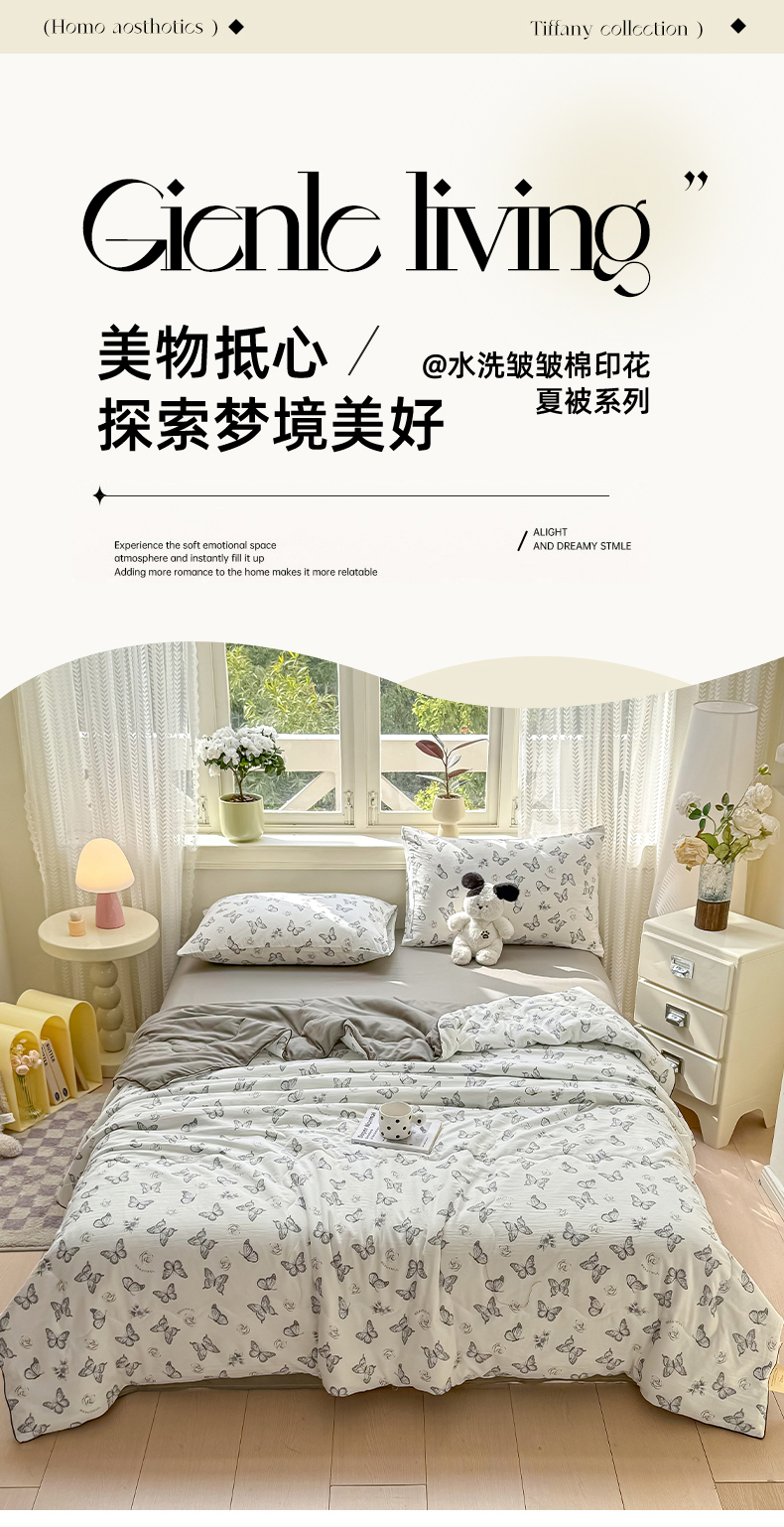 丝芙妮家居(原乐视家纺) 2025春夏新款针织棉卡通印花夏被夏凉被空调被 赫本蝶