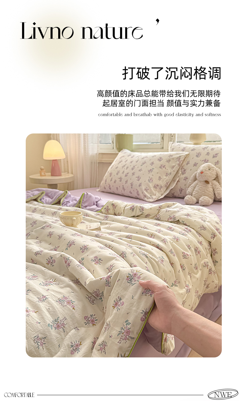 (总)丝芙妮家居(原乐视家纺) 2024新款A类色织水洗棉新疆棉花夏被,可颂咖,洛川棕,梦田-绿,暮落-绿,暮落-米黄,暮落-杏,暮落-粉
