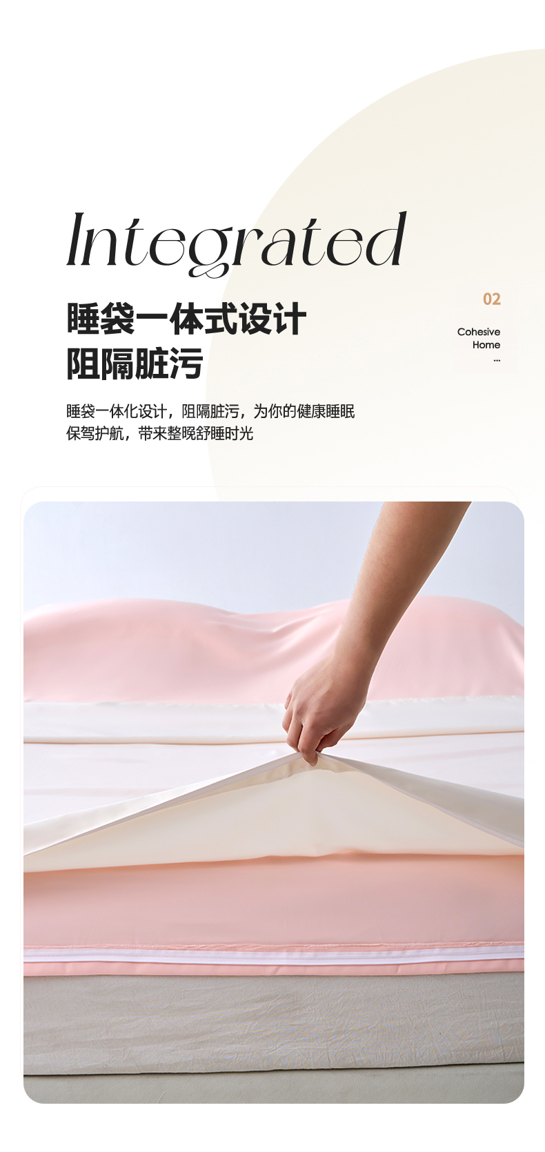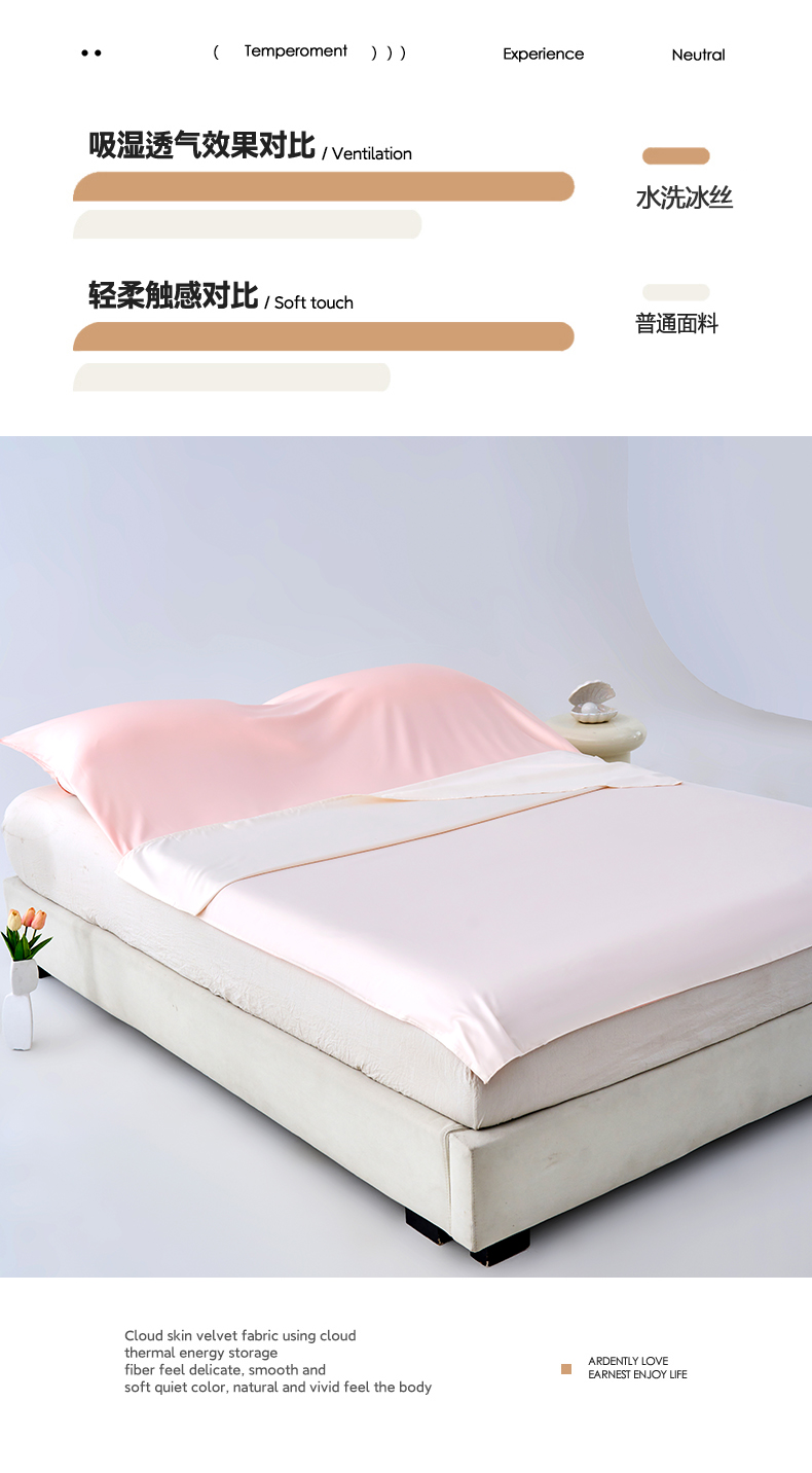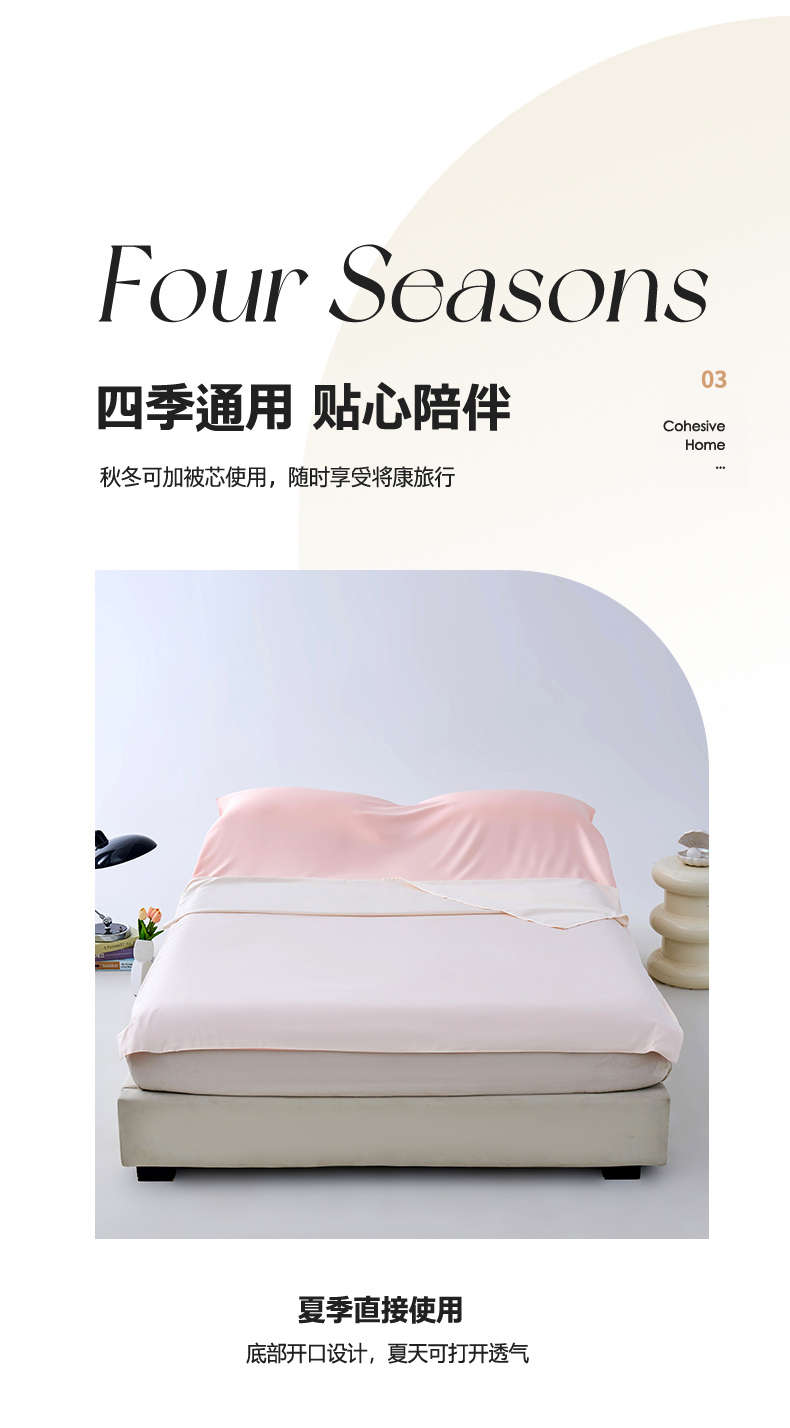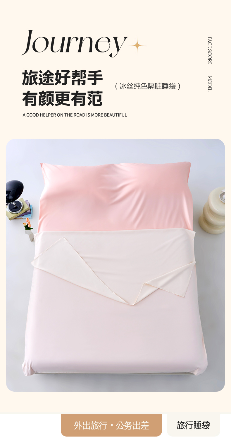商品名称:爱彼家纺 2025新款夏季冰丝纯色旅行睡袋-系列一 睡袋-奶昔白+粉