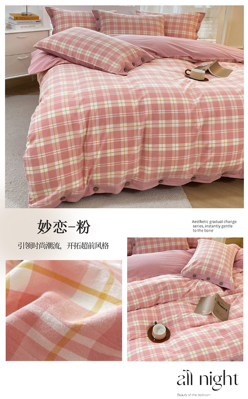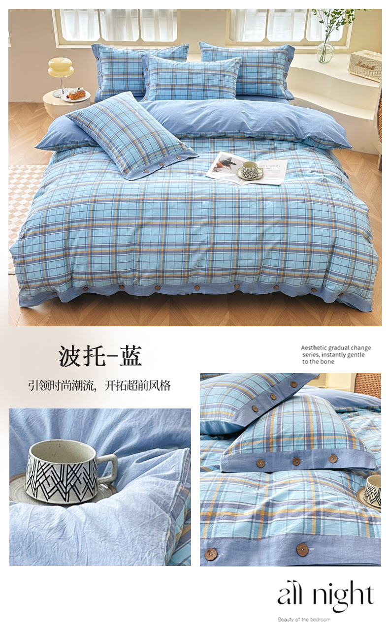 (总)琉宿家纺 2025新款纽扣款水洗棉四件套,爱语灰,波托兰,迪亚红,梵克咖,含影桔,回音桔,玛格灰,玛格蓝,梦漫灰,妙恋粉,千颂咖,舒恋咖,悠悠咖,云初绿