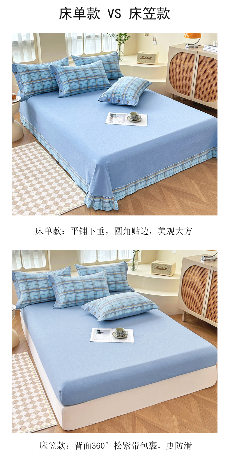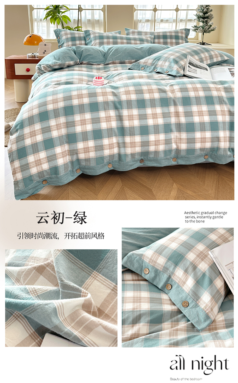 琉宿家纺 2025新款纽扣款水洗棉四件套 云初绿
