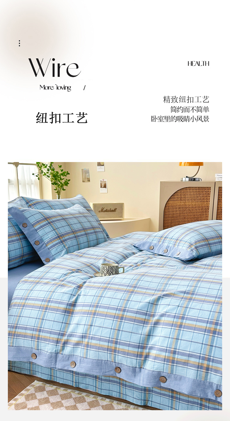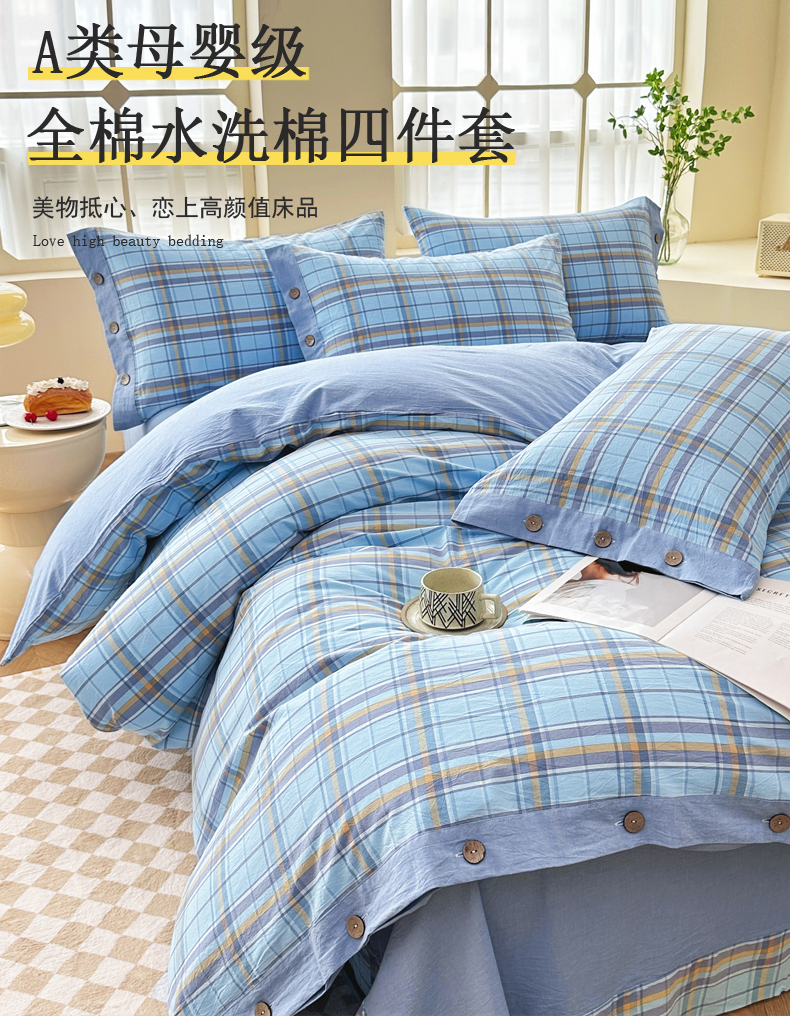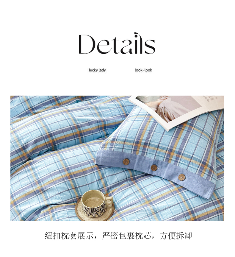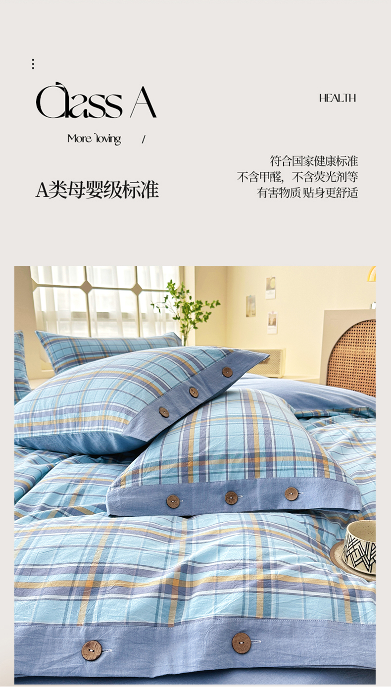 琉宿家纺 2025新款纽扣款水洗棉四件套 千颂咖,千颂咖