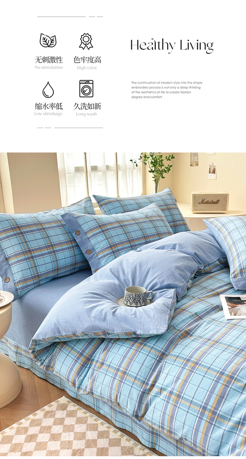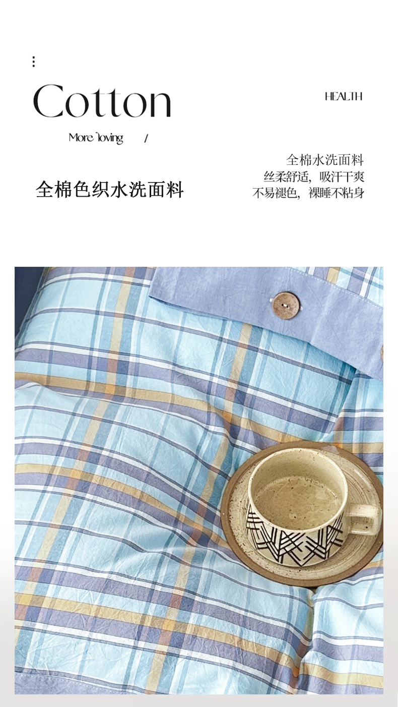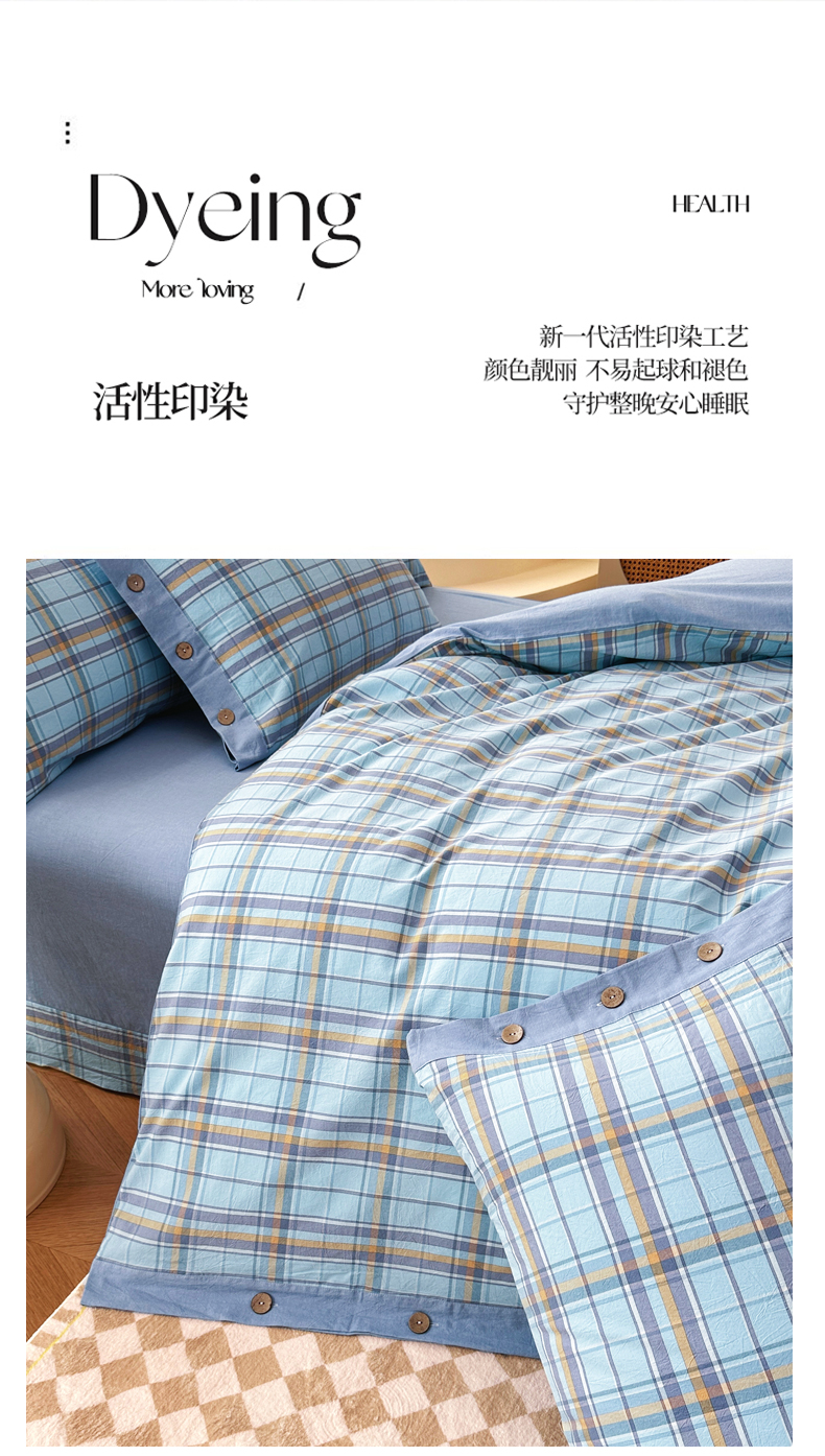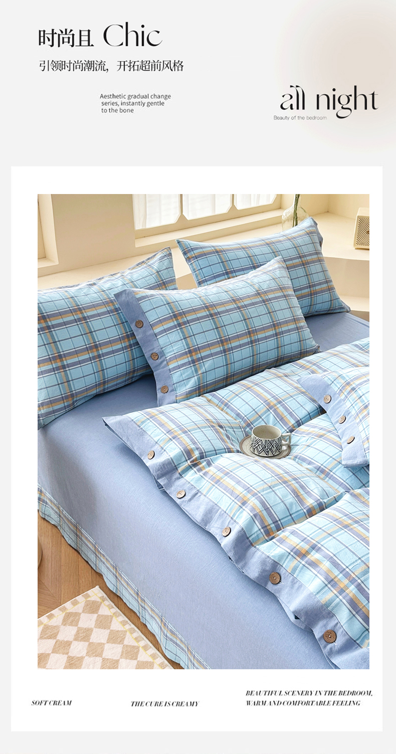 琉宿家纺 2025新款纽扣款水洗棉四件套 千颂咖,千颂咖
