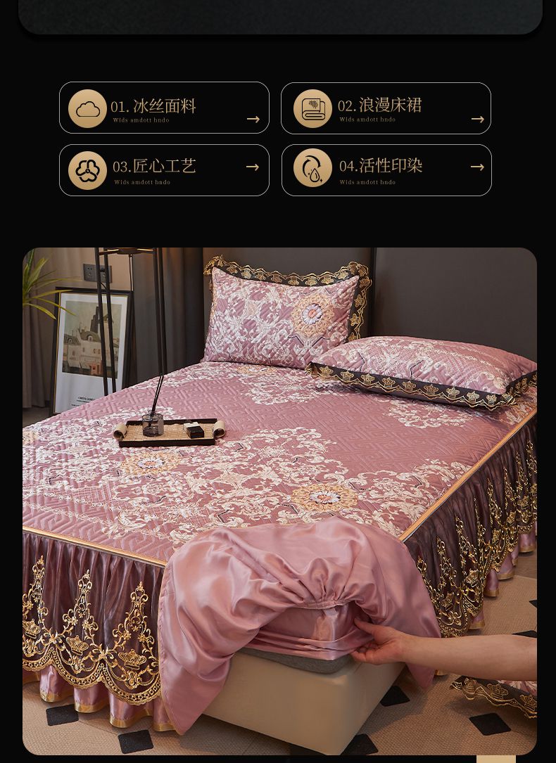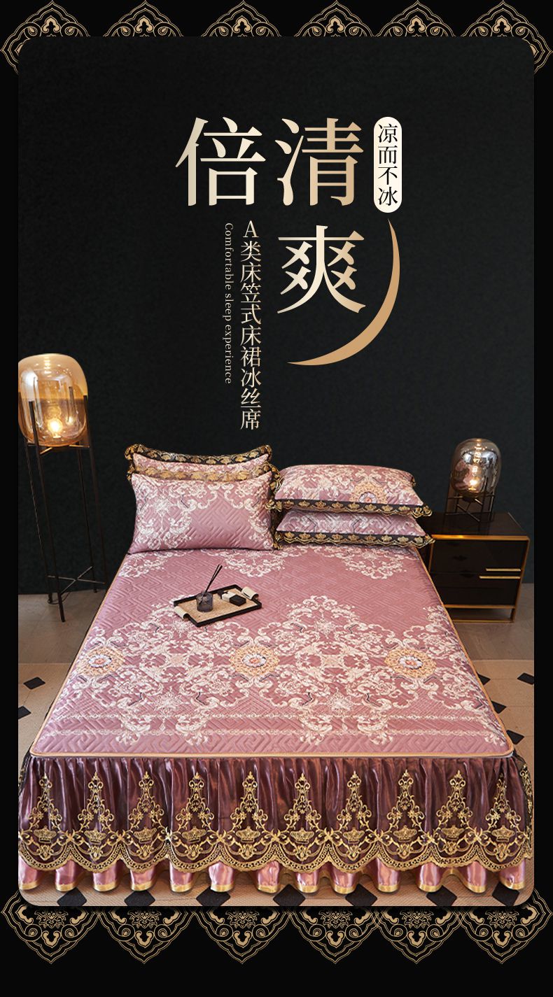 商品名称:罗艺轩 2025新款可拆卸床笠式床裙印花冰丝席 华尔兹
