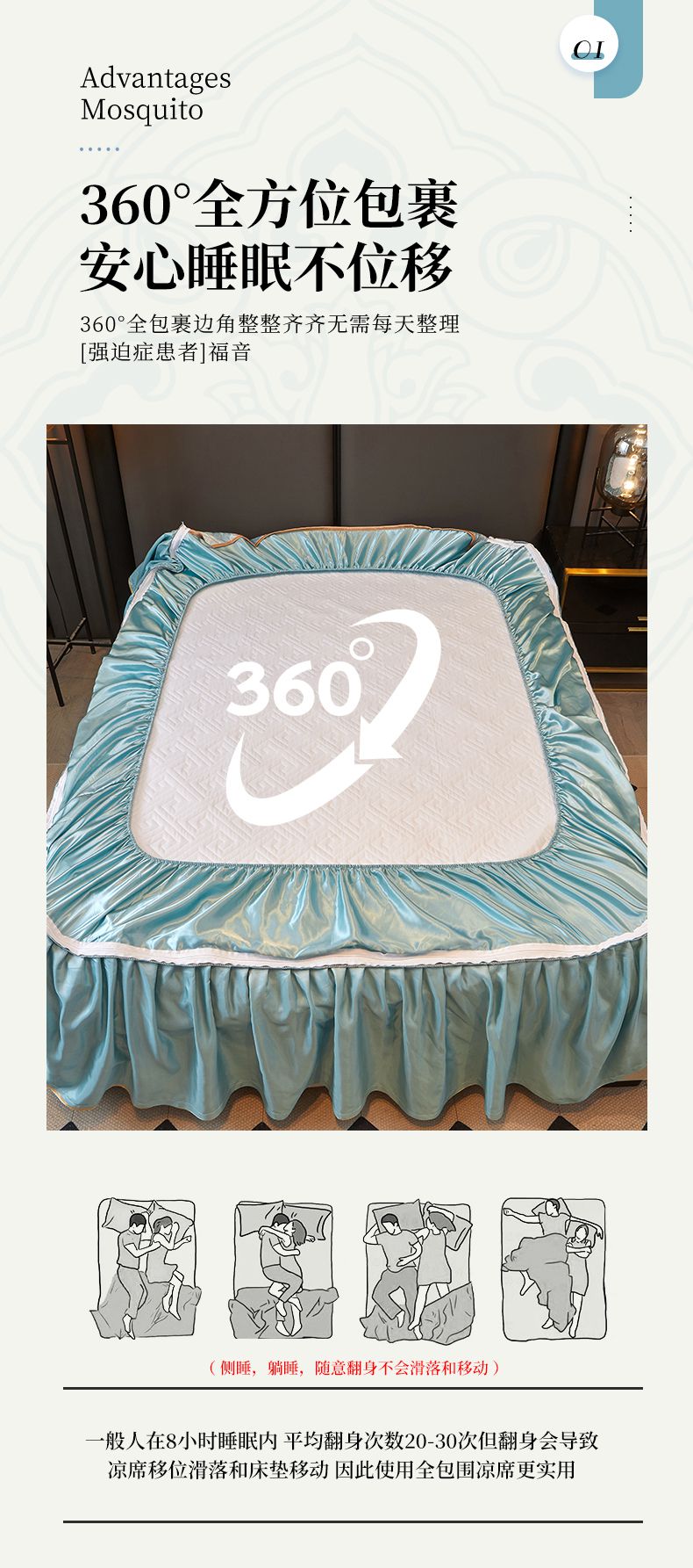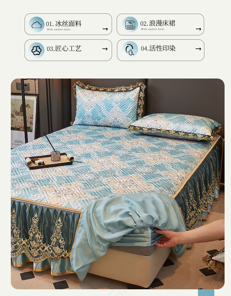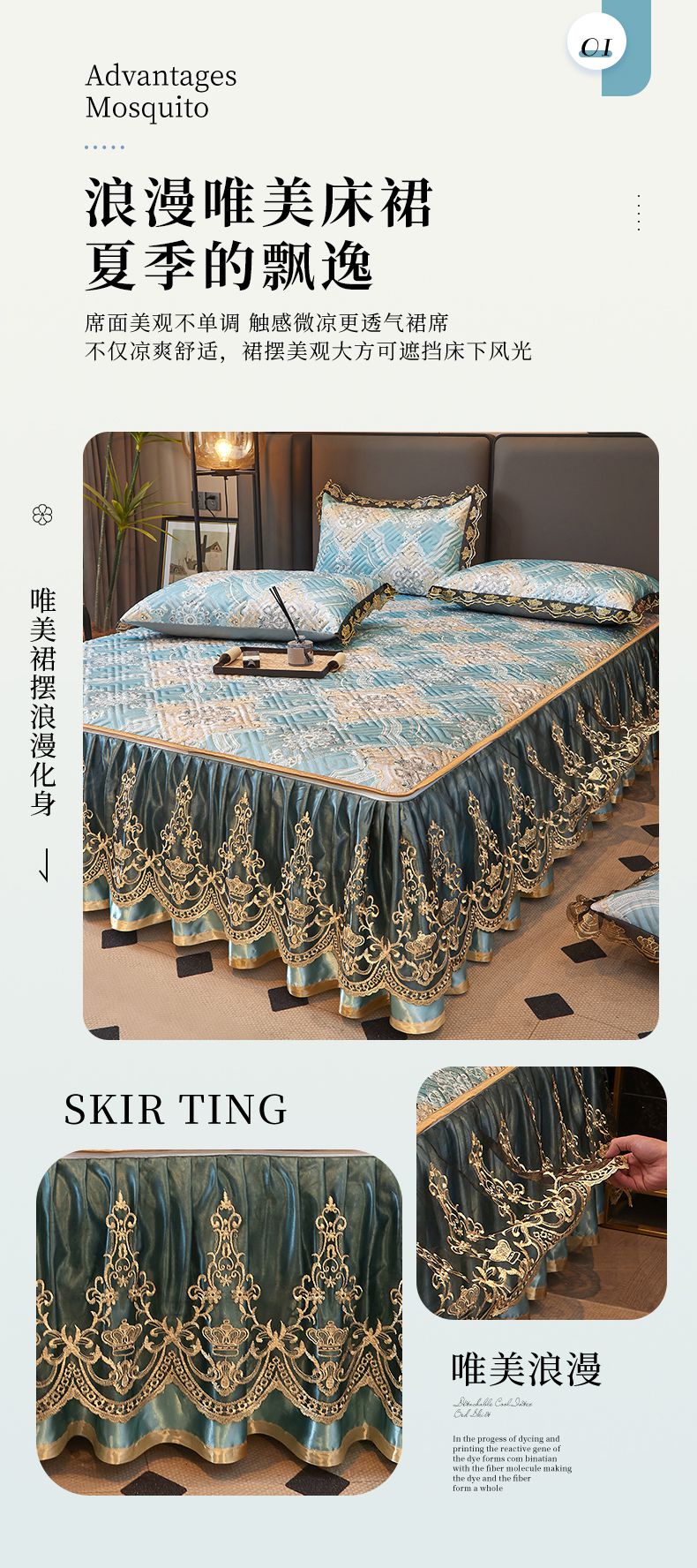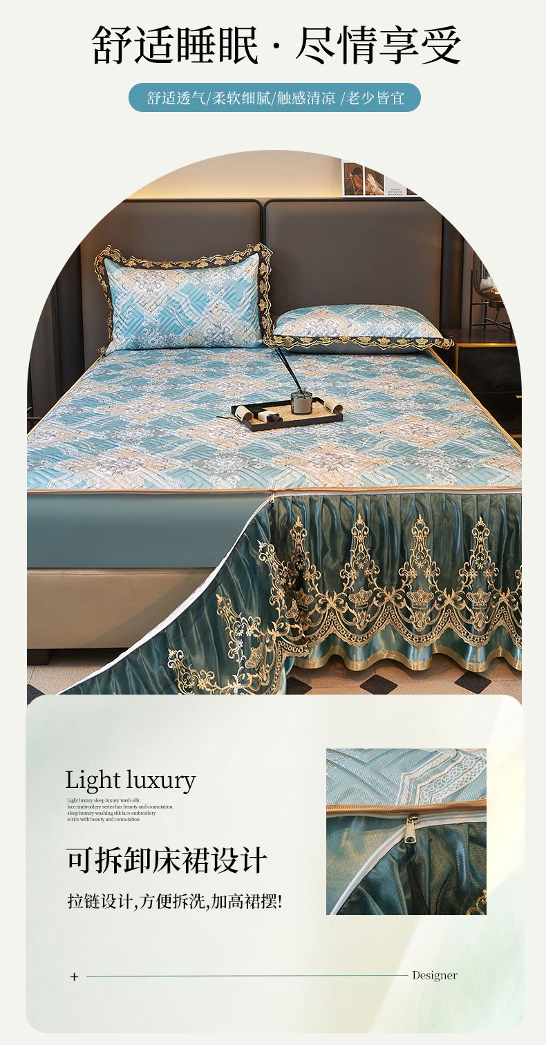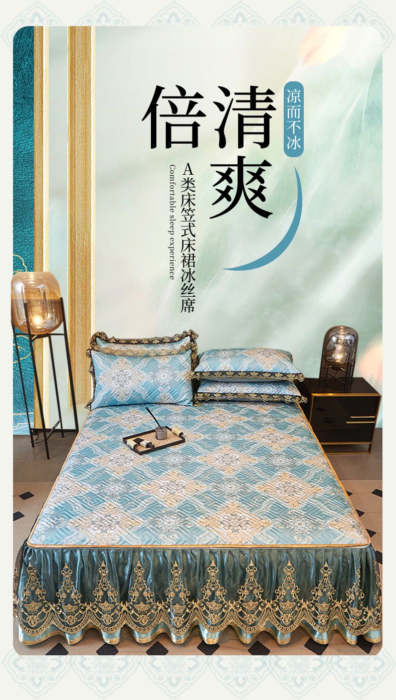 商品名称:罗艺轩 2025新款可拆卸床笠式床裙印花冰丝席 塞纳青春