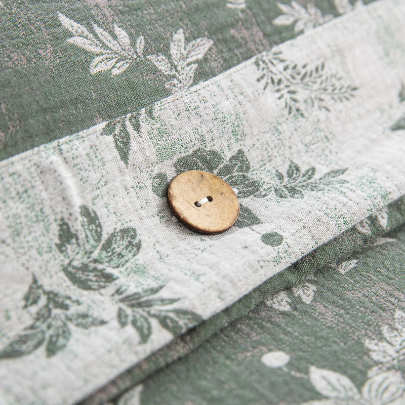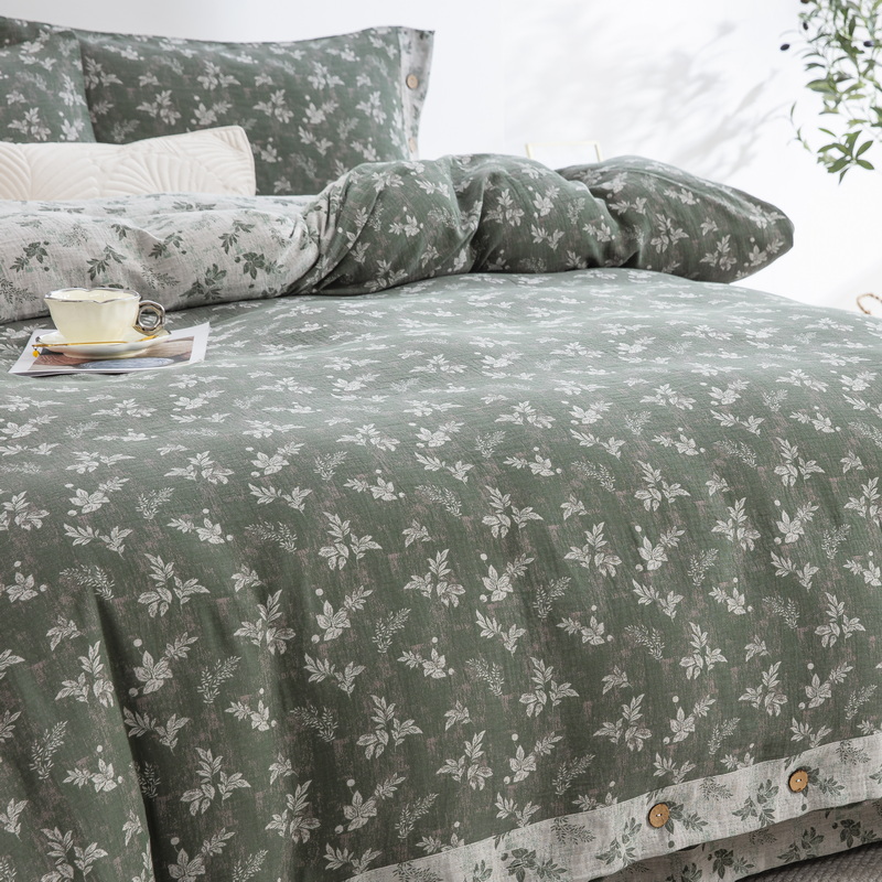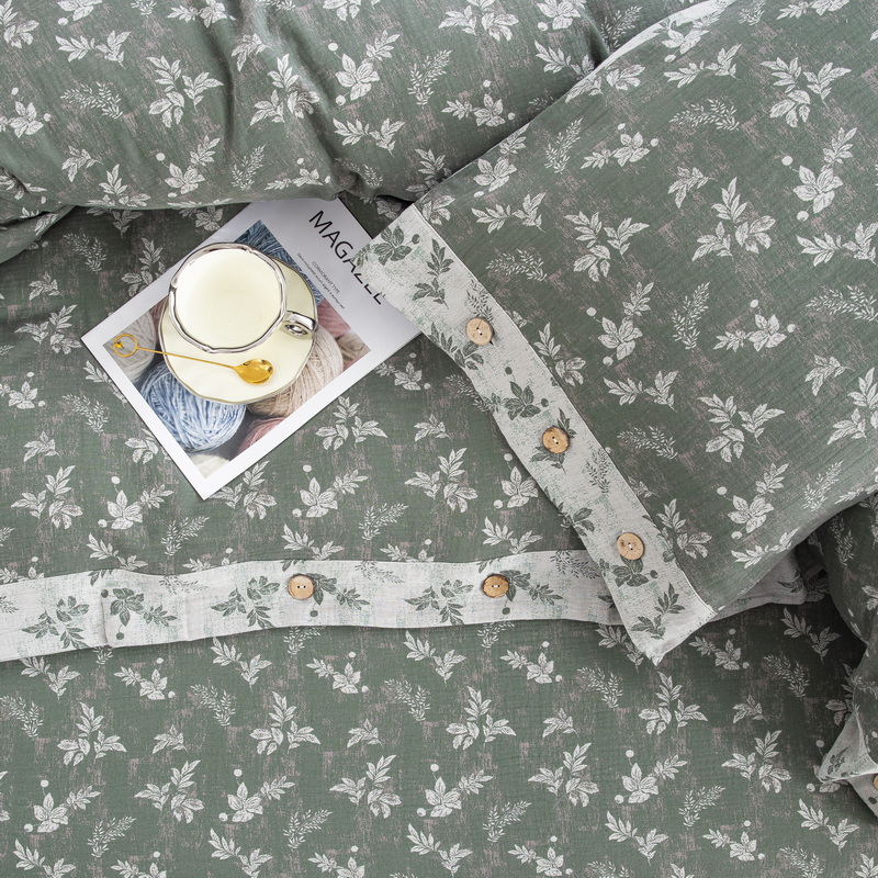 2025新款全棉色织双层纱纽扣款四件套 倾城-绿