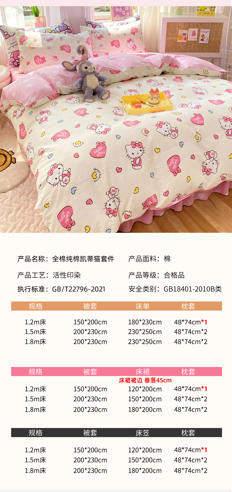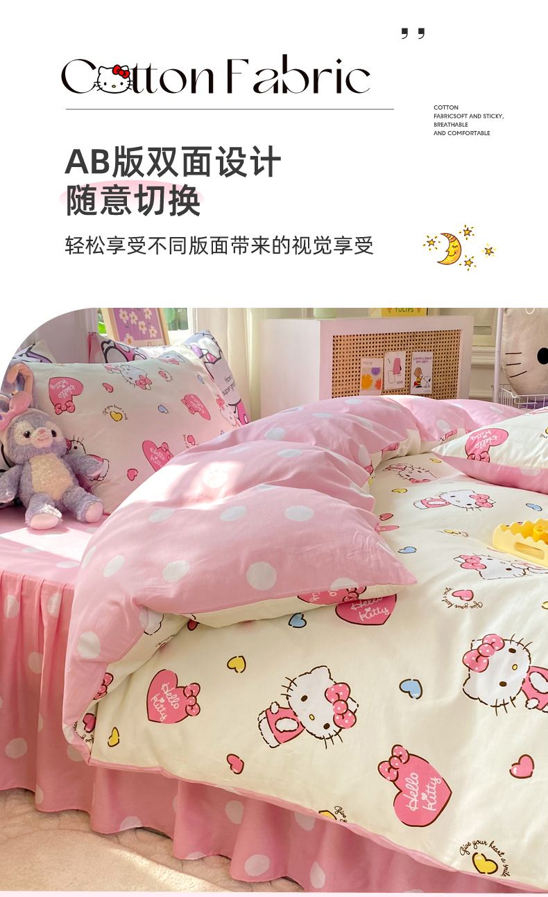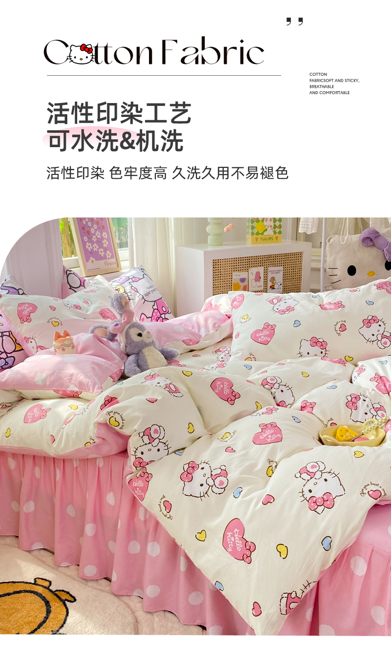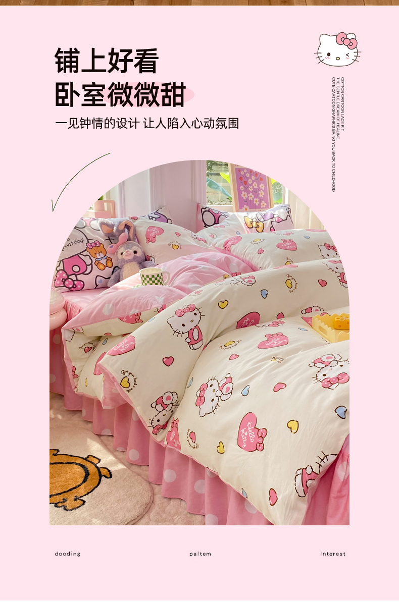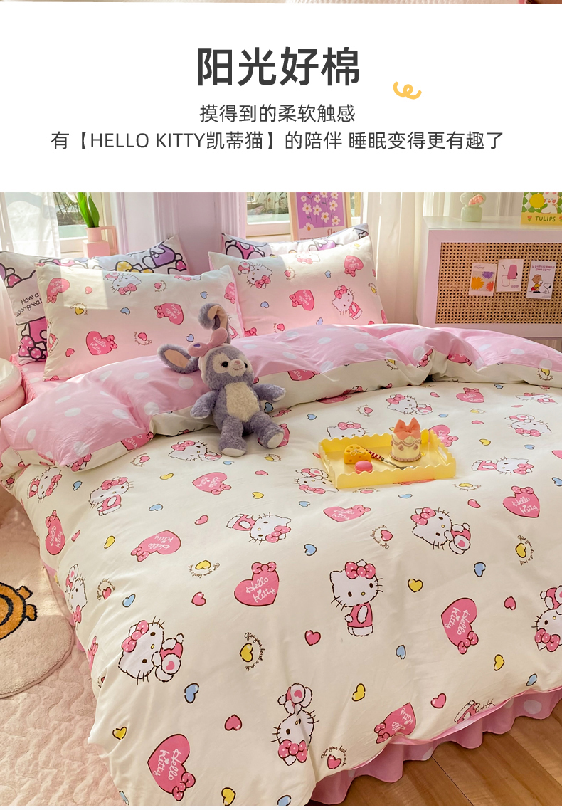 当前位置: 91家纺网 > 商品网购 > 床品套件 > 四件套 > 全棉普通四件套 > 玉元坊 2025年5月新品三丽鸥全棉床单纯棉床裙床笠三四件套简约基础款式-凯蒂猫简约款式 公主kt【简约款】