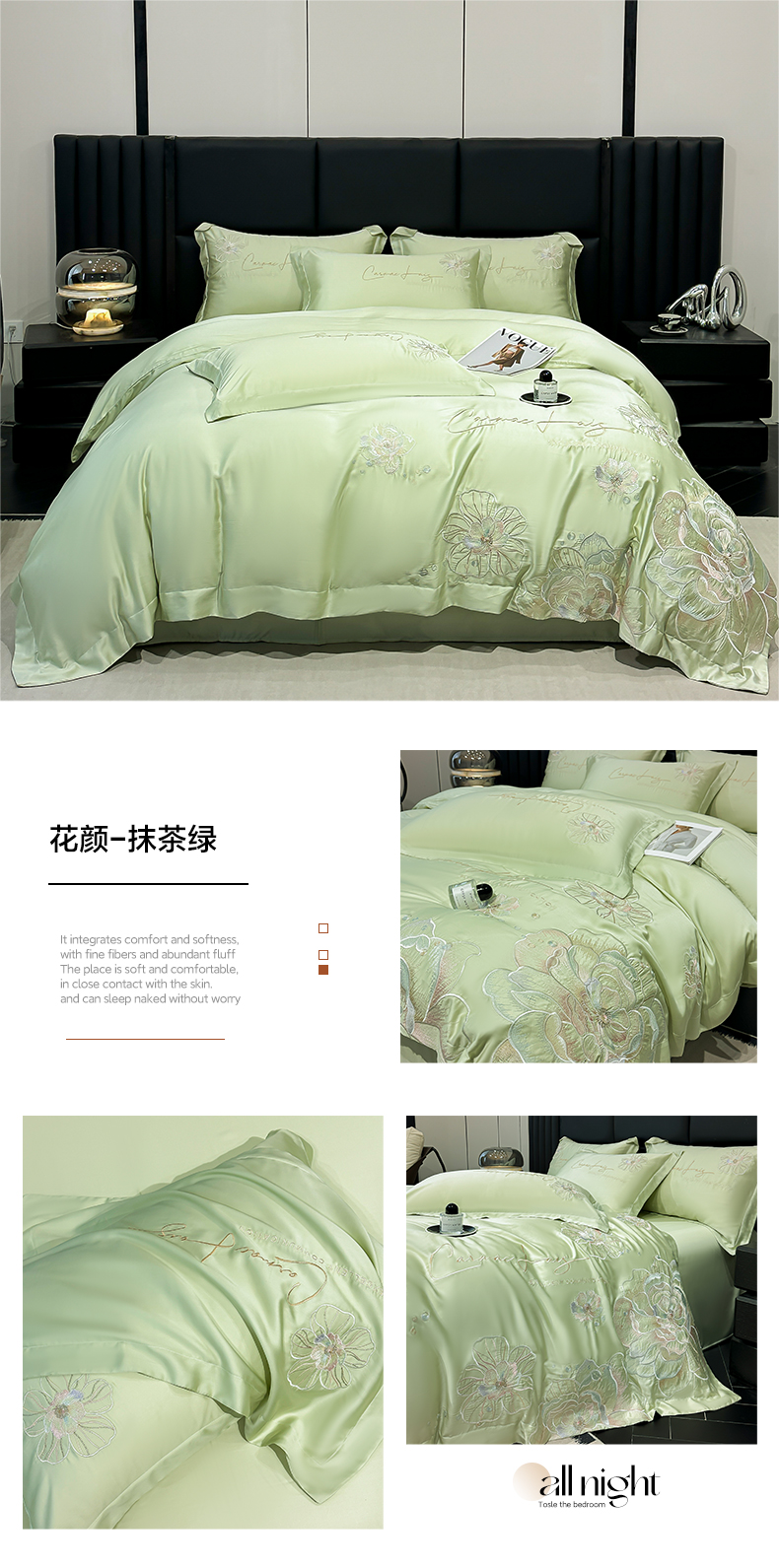 欧乐蒂 2025新款水洗冰丝刺绣四件套-花颜 花颜-抹茶绿