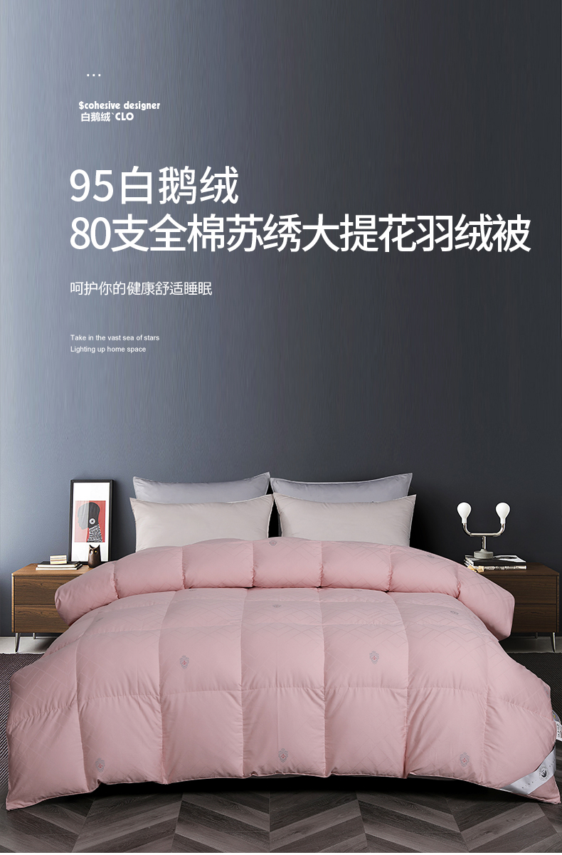 • 91家纺网 家纺一手货源 找家纺 呆头鹅羽绒工厂店 2025新款80支全棉苏绣提花羽绒被 白鹅绒鸭绒被子被芯羽绒工厂店 豆沙