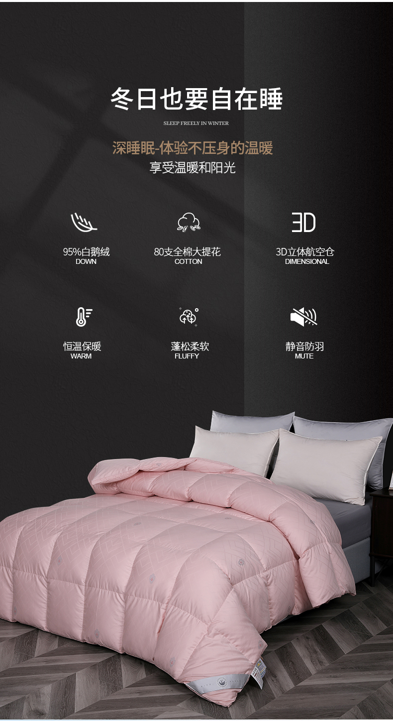 • 91家纺网 家纺一手货源 找家纺 (总)呆头鹅羽绒工厂店 2025新款80支柔赛丝羽绒被-标准款 白鹅绒鸭绒被子被芯羽绒工厂店,白色,粉色,黄色,灰色