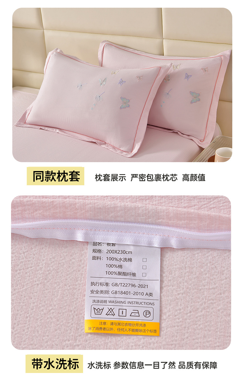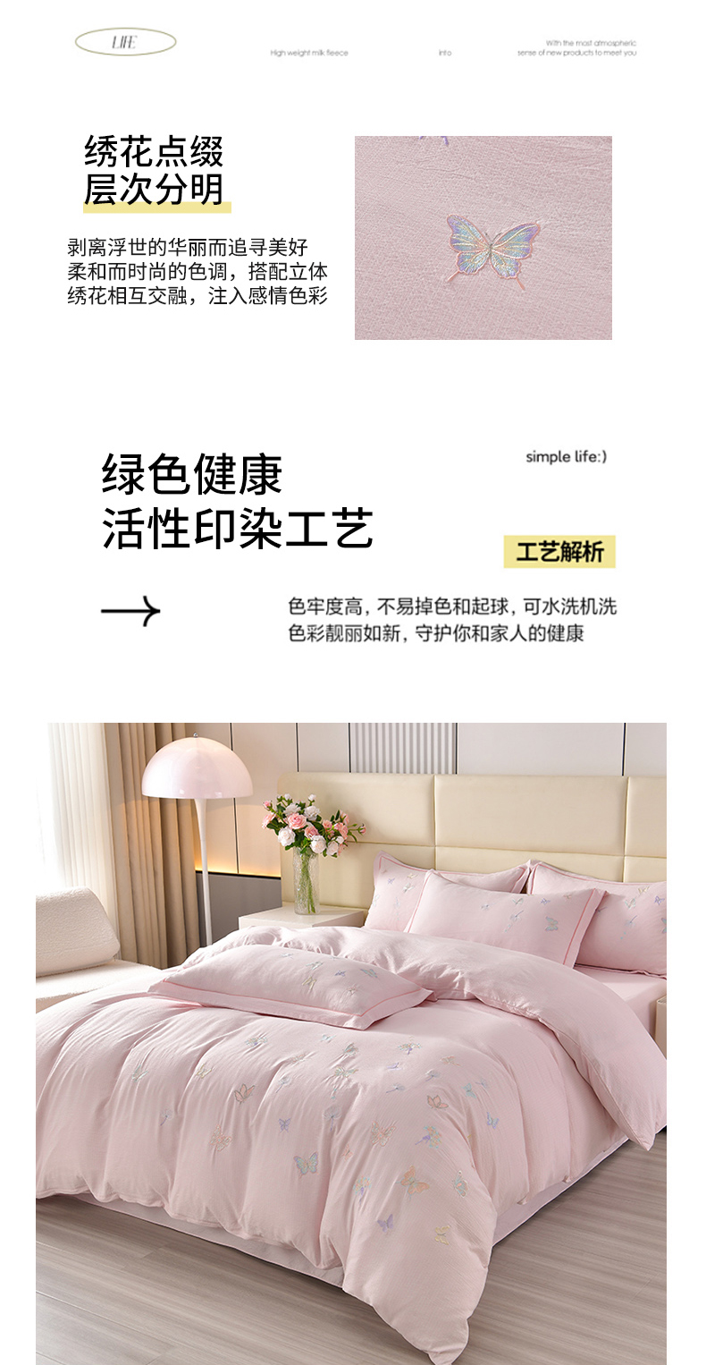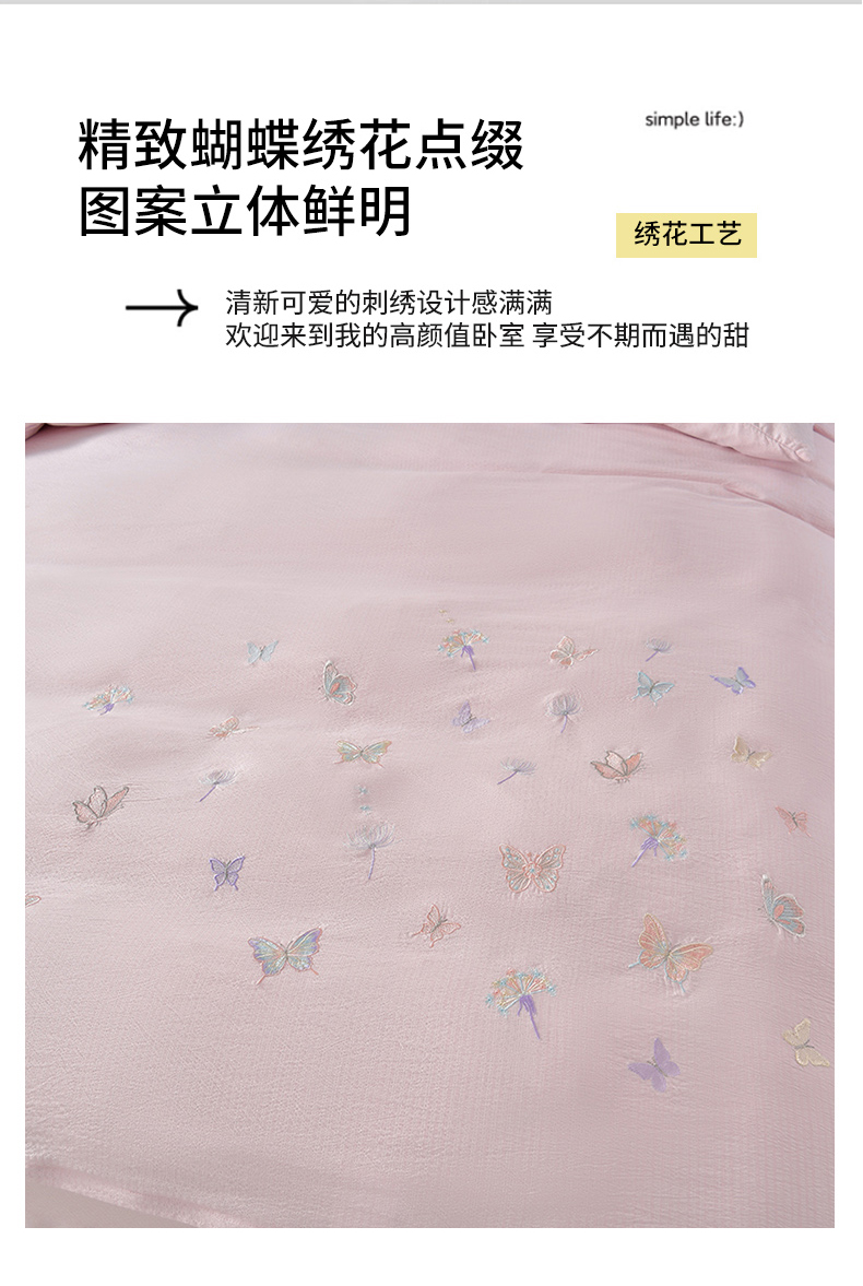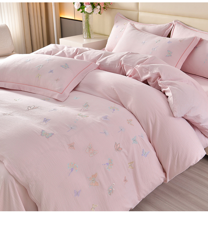 商品名称:星窝2025新款绣花水洗棉四件套-蝶舞飞扬系列 温馨粉