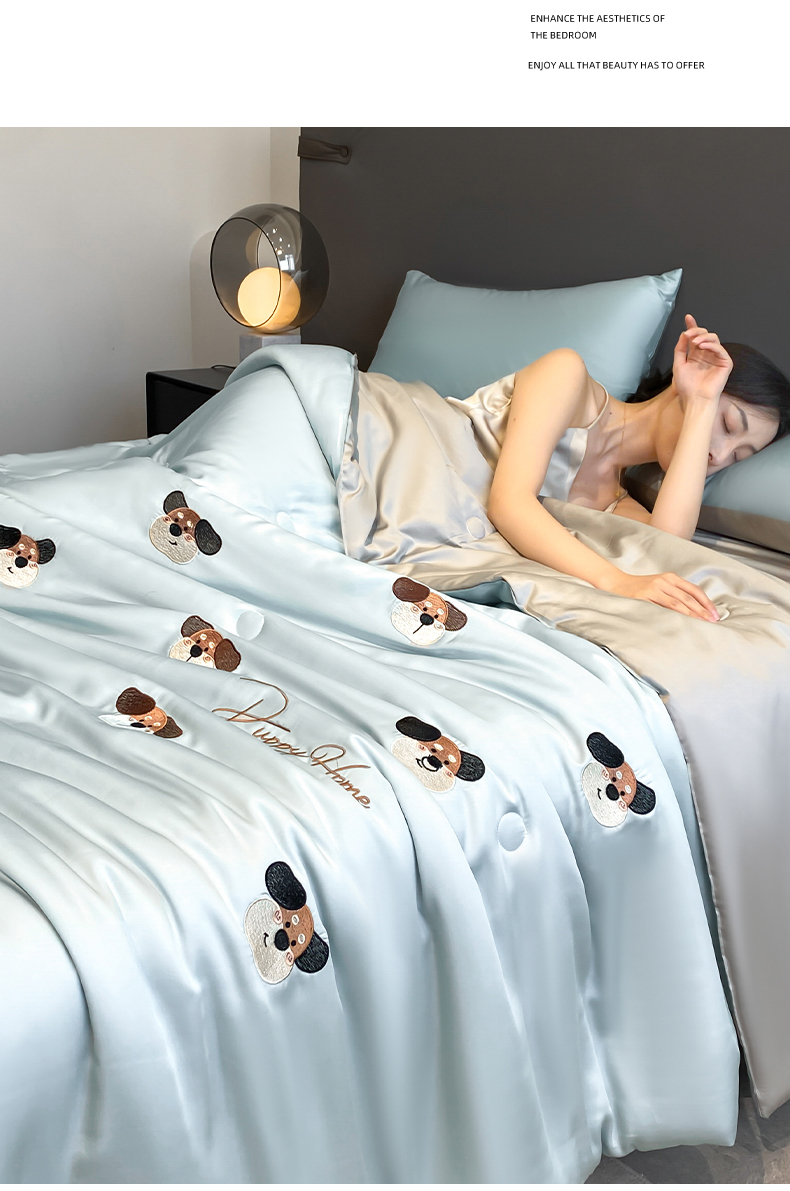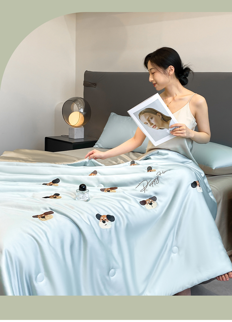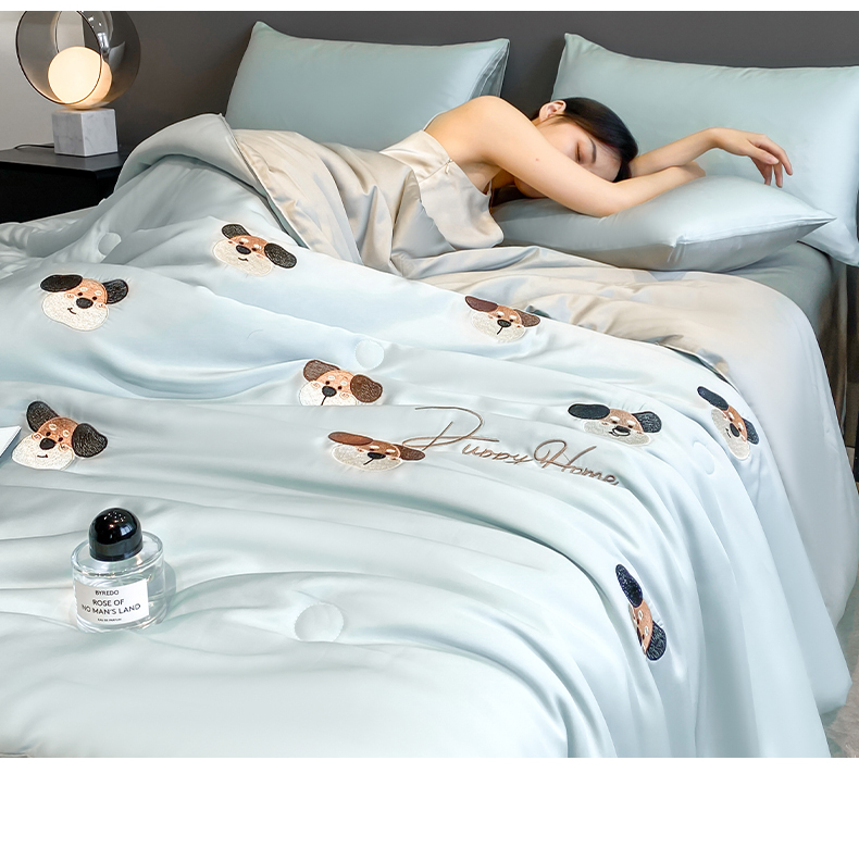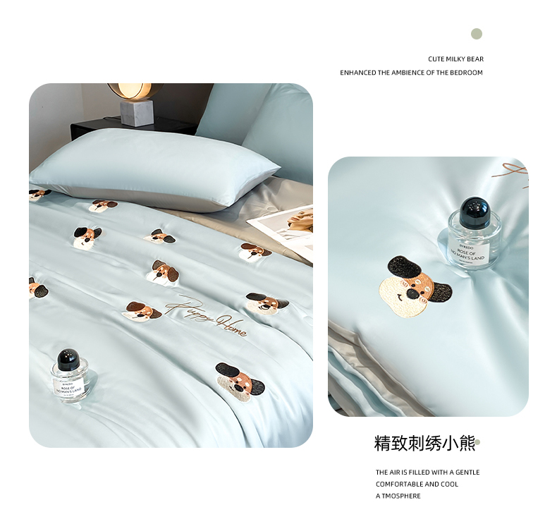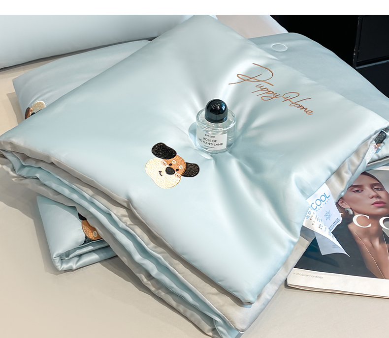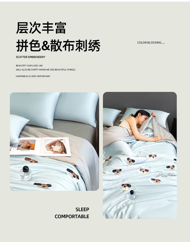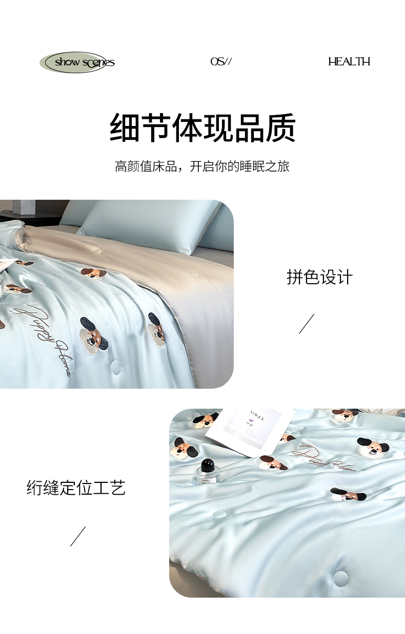 当前位置: 91家纺网 > 商品网购 > 床品套件 > 四件套 > 夏被四件套 > 丝芙妮家居(原乐视家纺) 2025春夏新款水洗冰丝夏被夏凉被空调被四件套-满绣系列 欢乐狗-兰