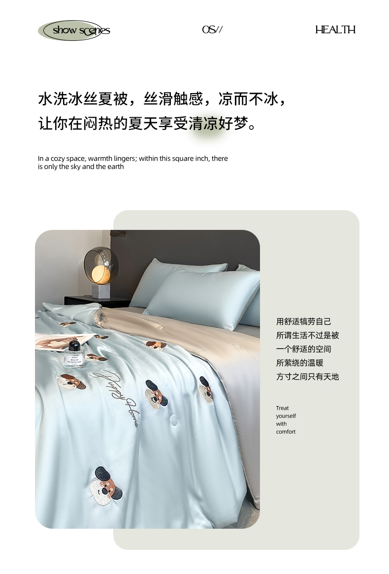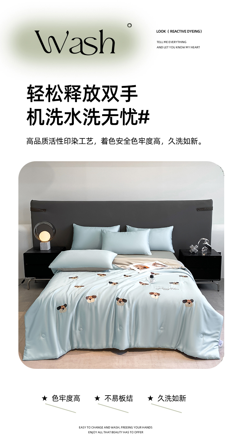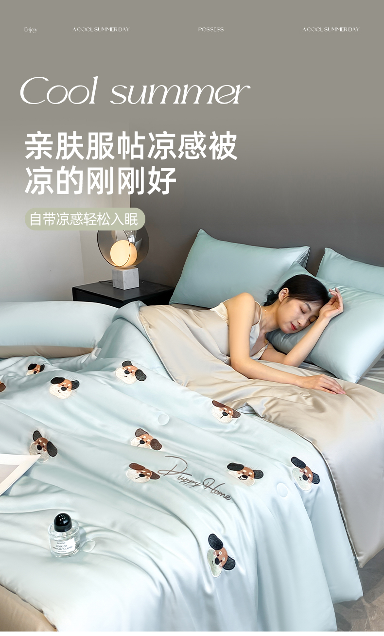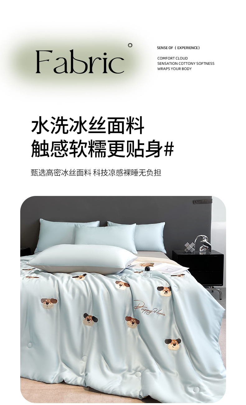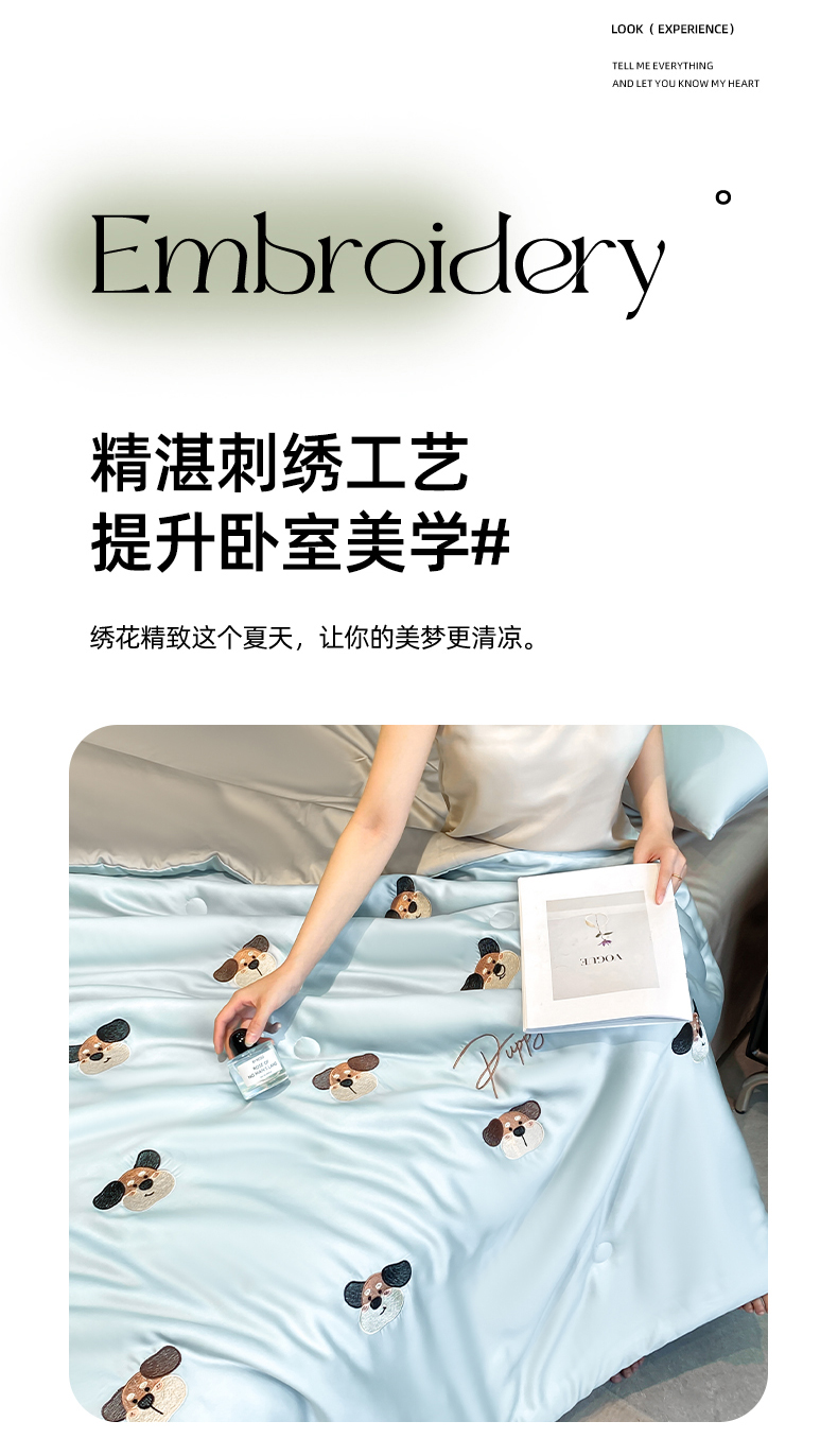 当前位置: 91家纺网 > 商品网购 > 床品套件 > 四件套 > 夏被四件套 > 丝芙妮家居(原乐视家纺) 2025春夏新款水洗冰丝夏被夏凉被空调被四件套-满绣系列 欢乐狗-兰