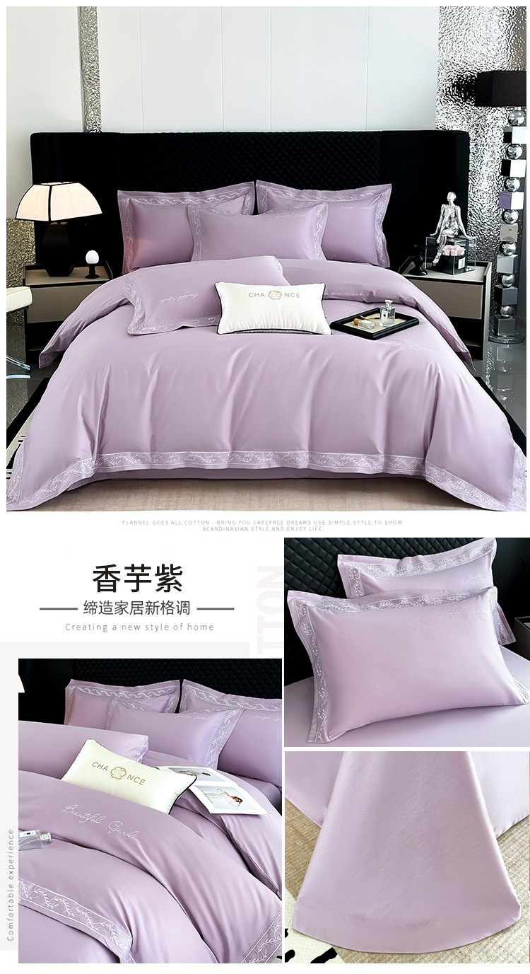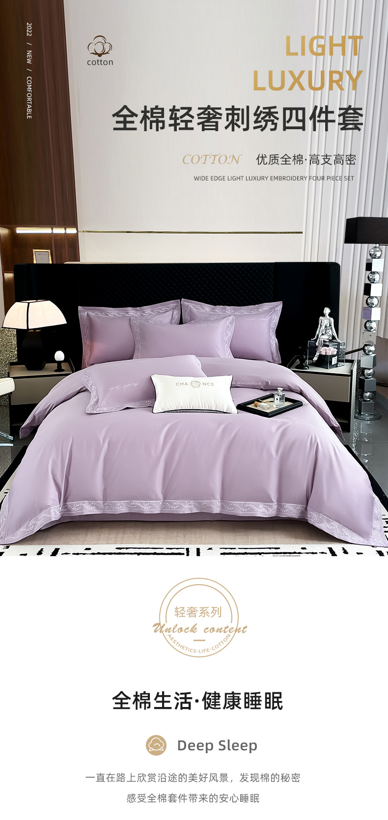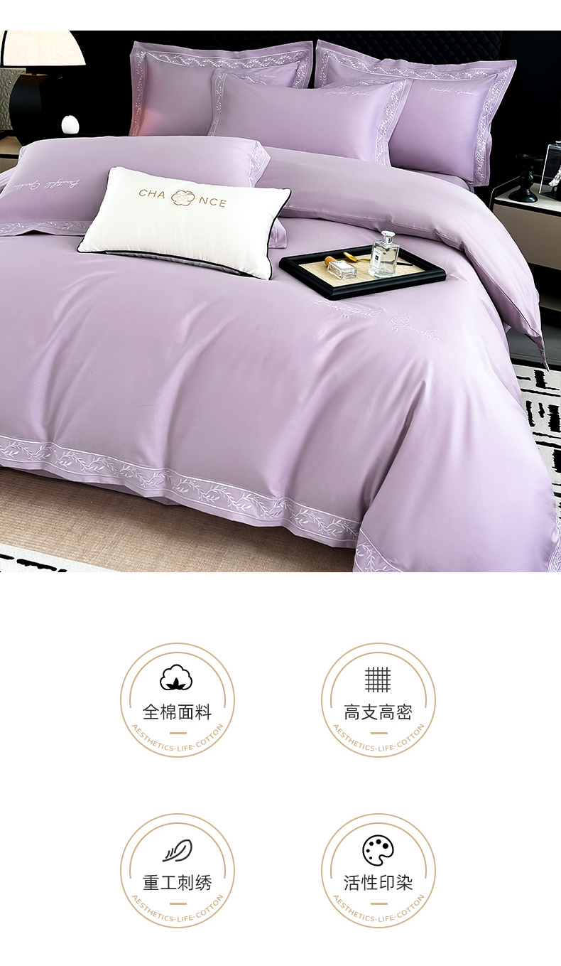商品名称:梧桐家居 2025春夏新款全棉纯棉轻奢刺绣四件套-金枝玉叶 金枝玉叶-香芋紫