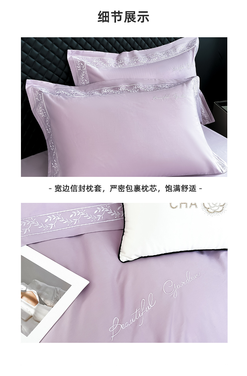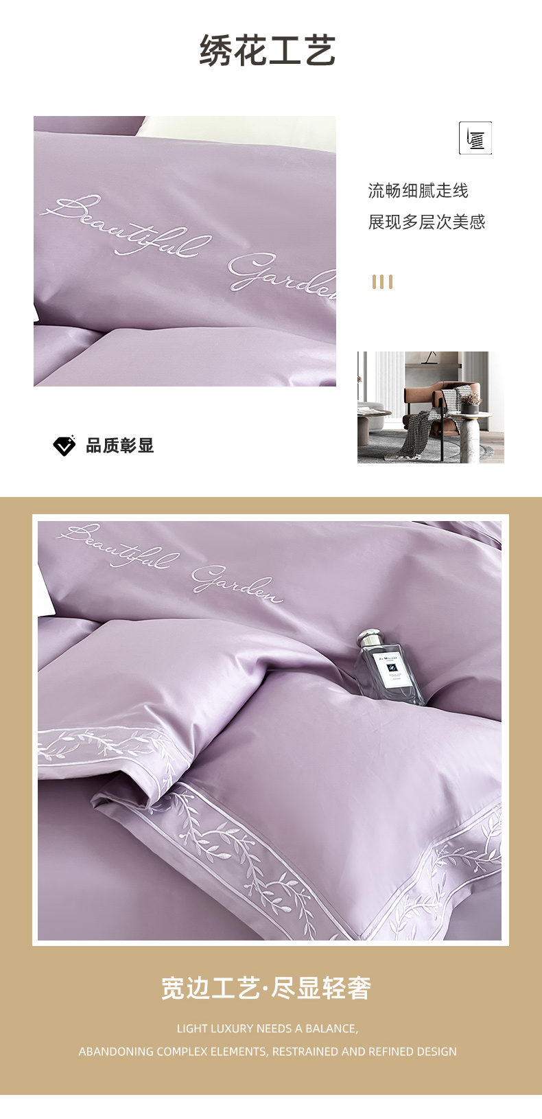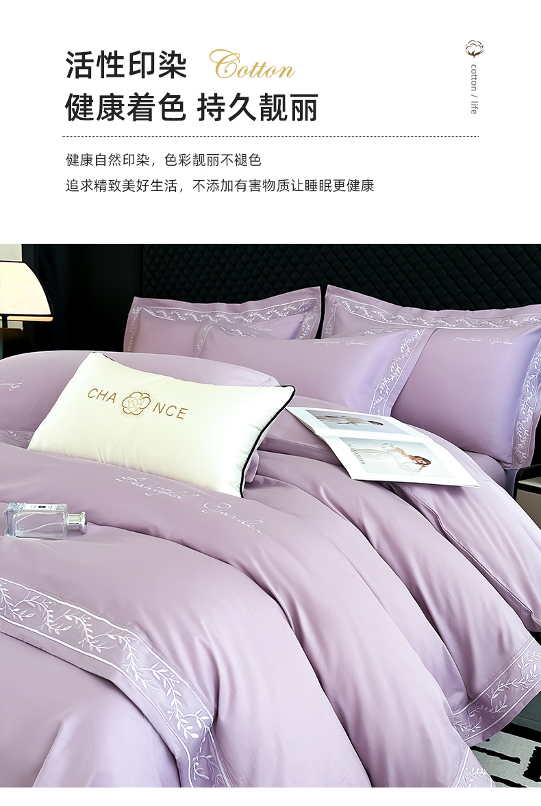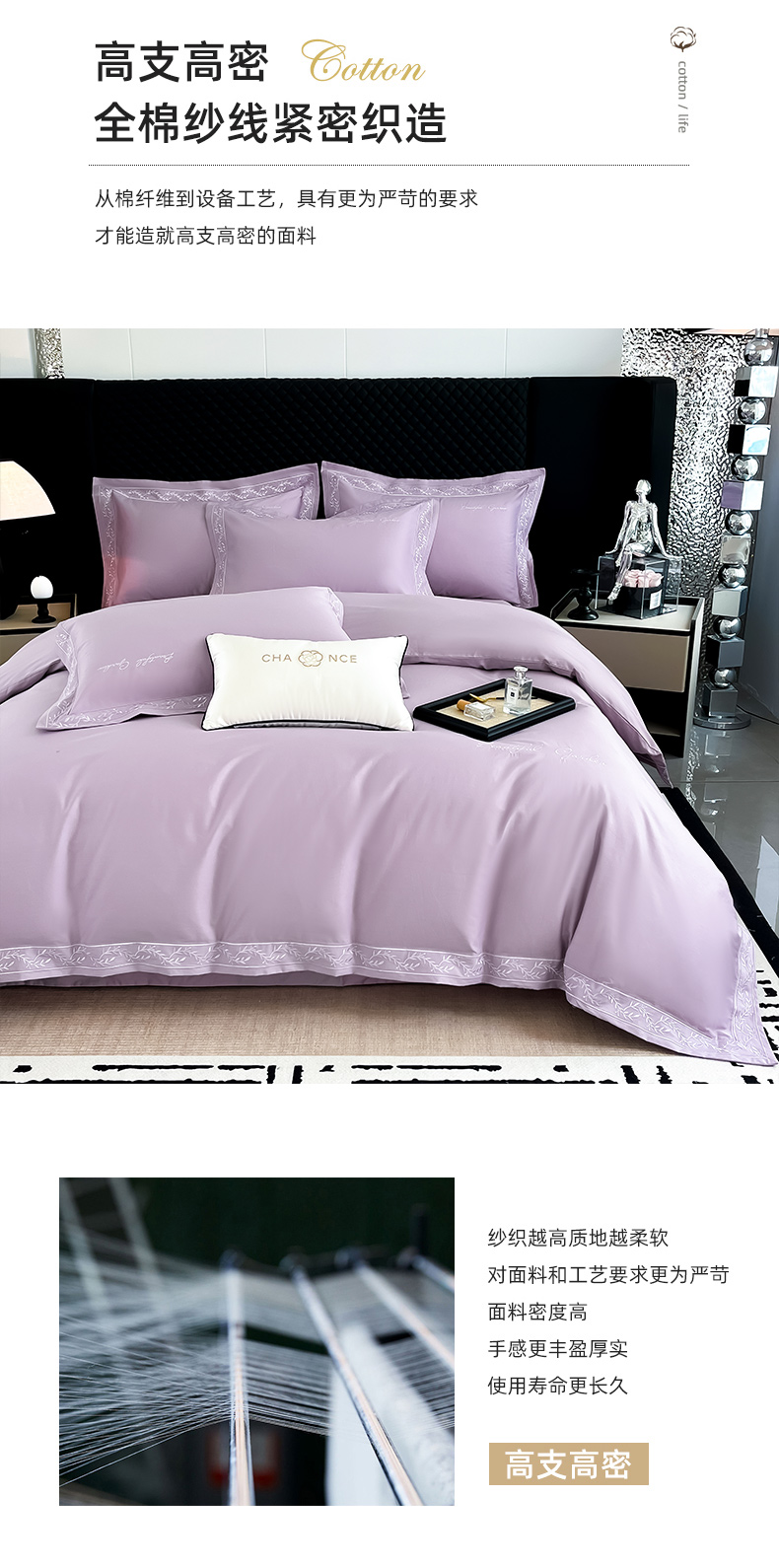 商品名称:梧桐家居 2025春夏新款全棉纯棉轻奢刺绣四件套-金枝玉叶 金枝玉叶-香芋紫