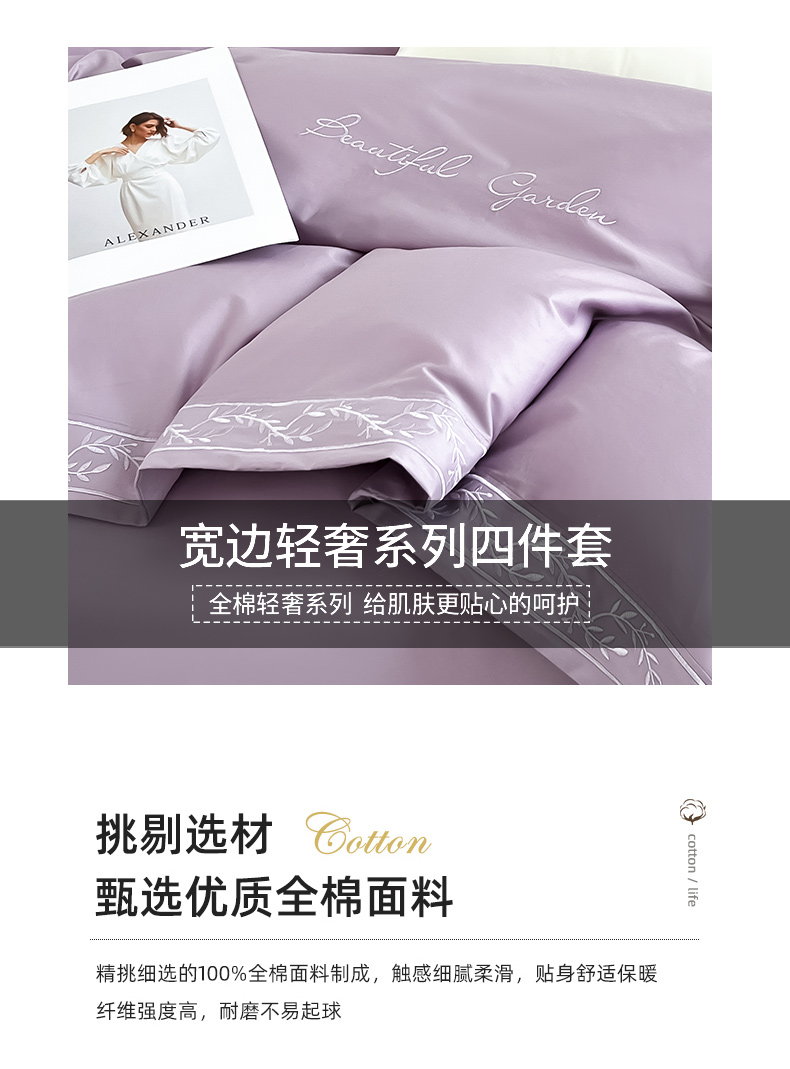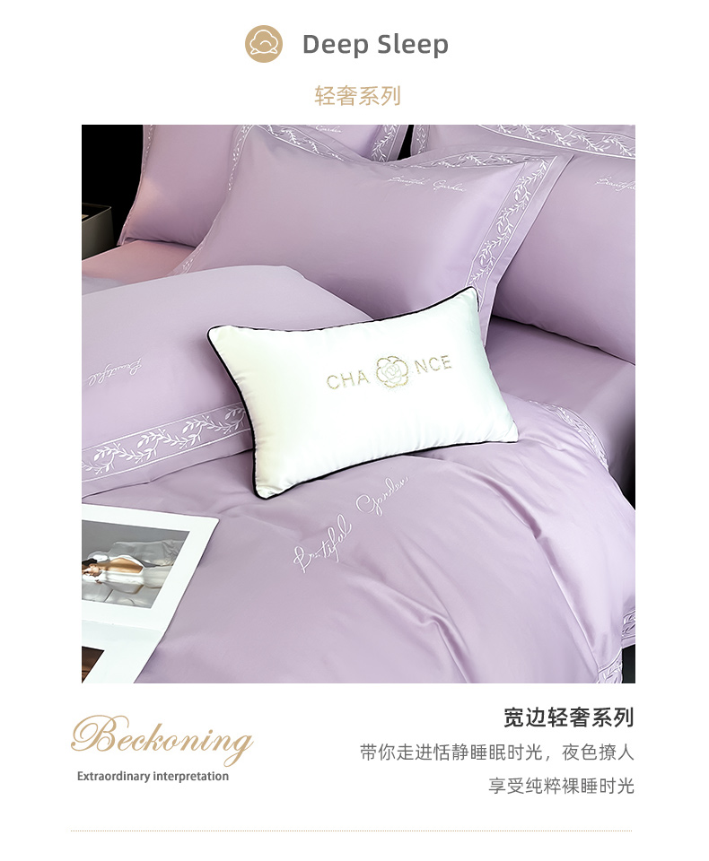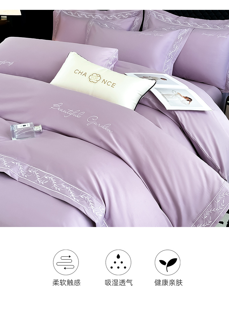 梧桐家居 2025春夏新款全棉纯棉轻奢刺绣四件套-金枝玉叶 金枝玉叶-香芋紫