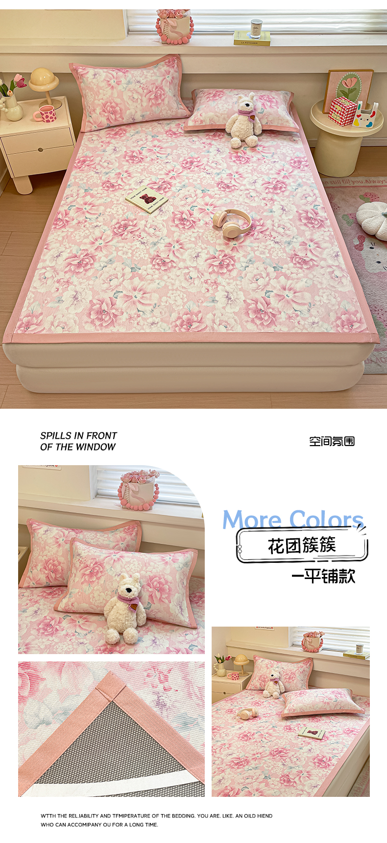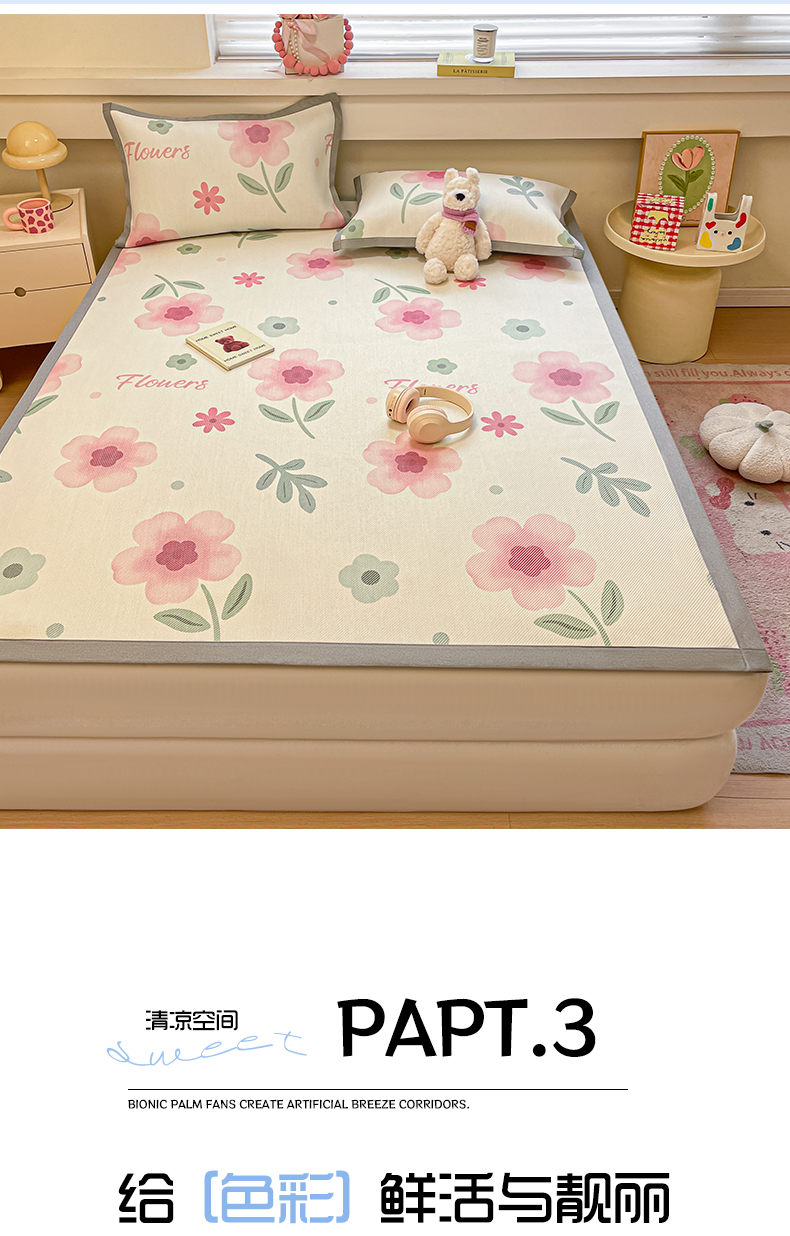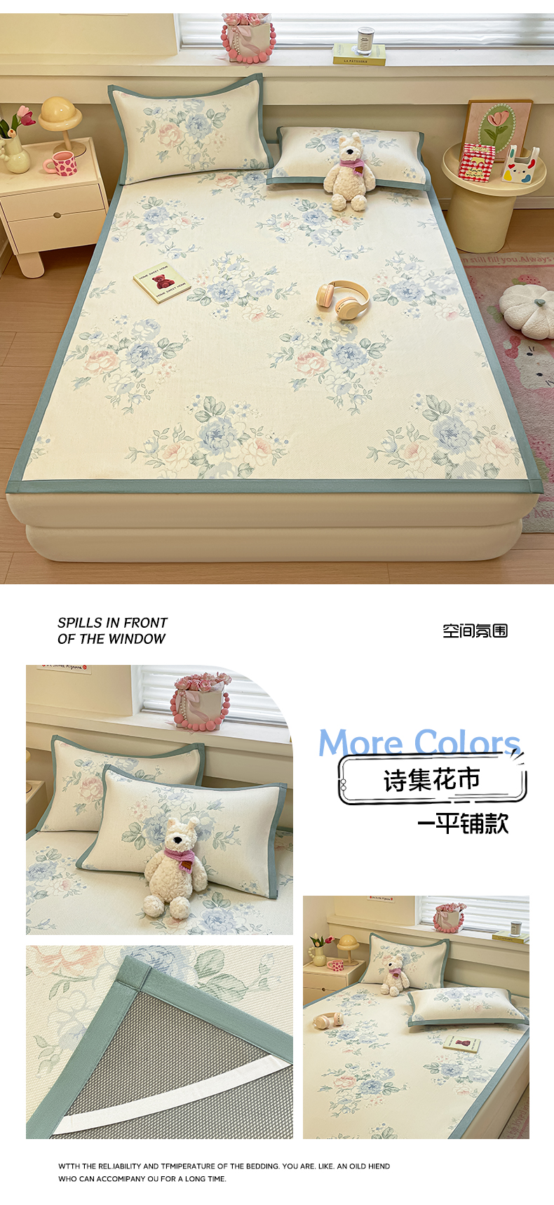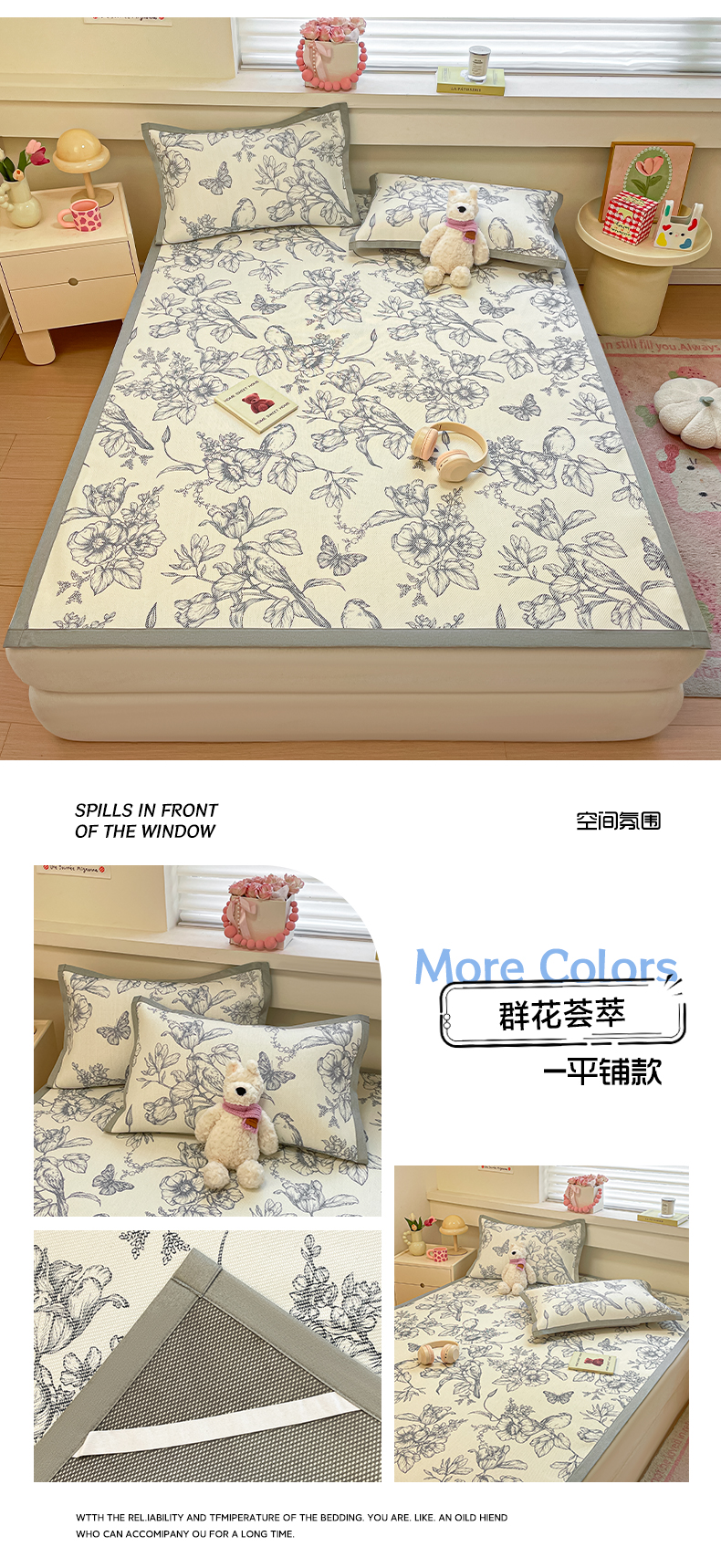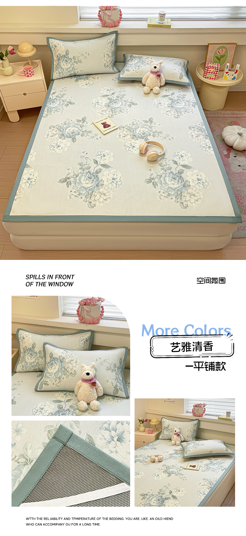 商品名称:逸尚阁 2025春夏新款数码印花冰藤席空调席三件套 予花之美-平铺款