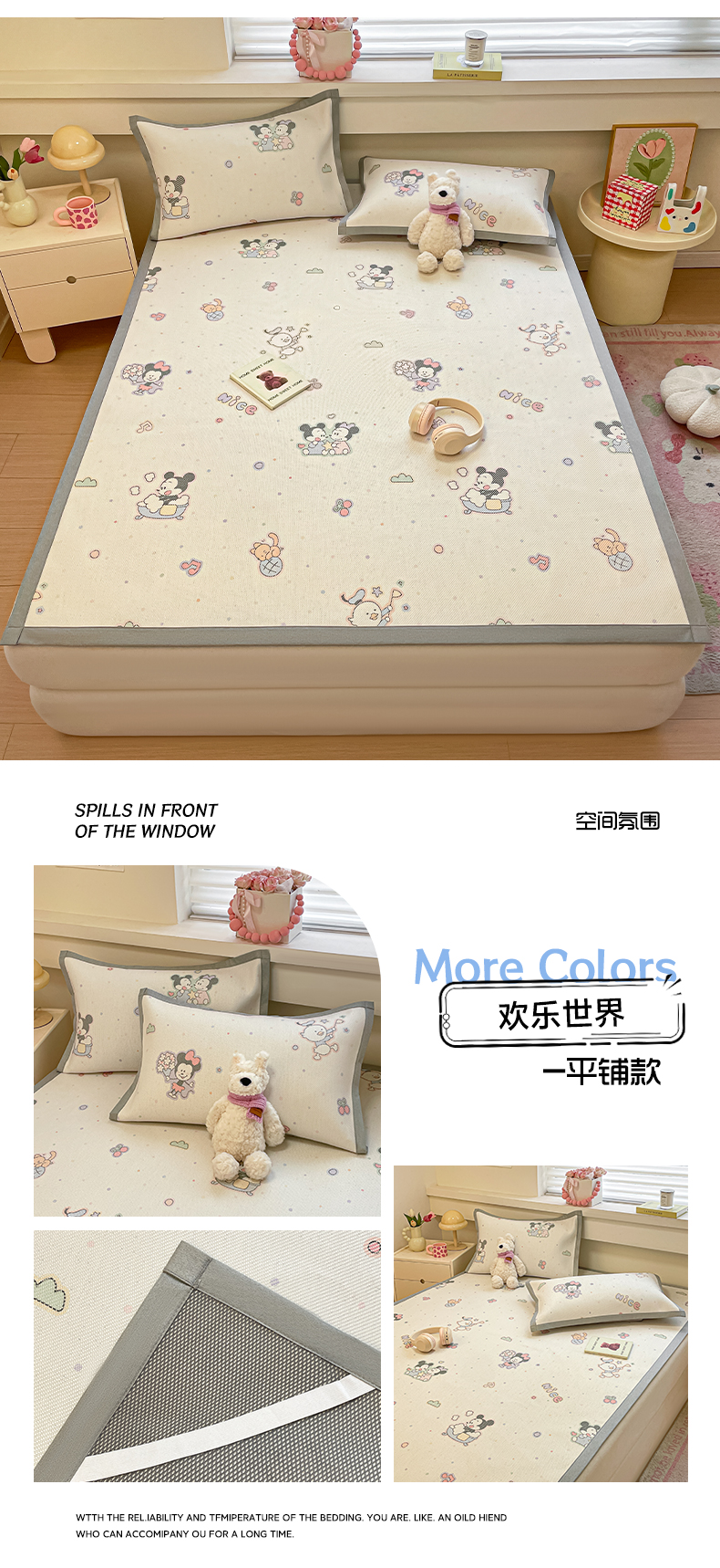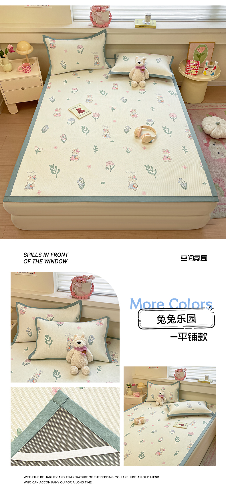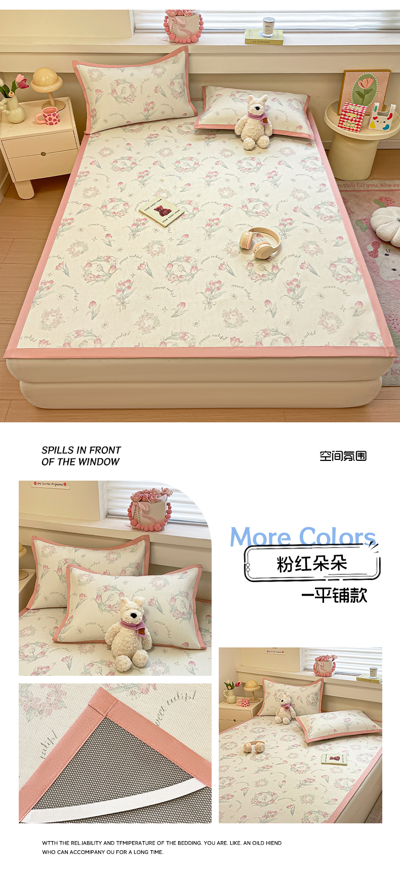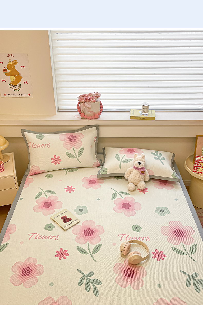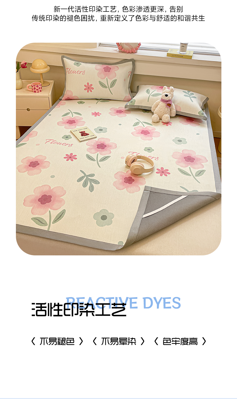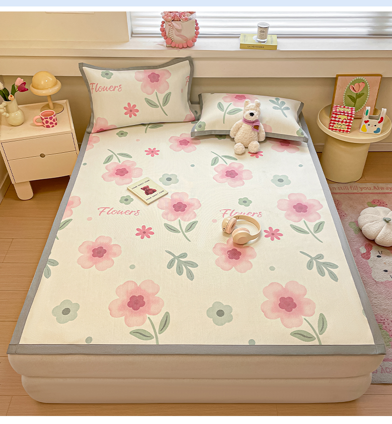商品名称:逸尚阁 2025春夏新款数码印花冰藤席空调席三件套 予花之美-平铺款